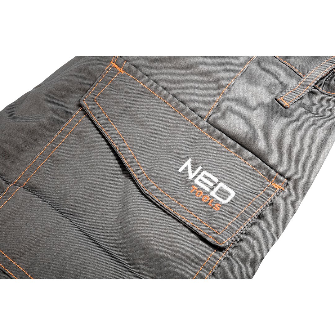 A NEO munkaruha nadrág kényelmes és praktikus ruházati termék úgy a szakemberek számára, mint a barkácsolóknak, aki maguk végzik az otthoni felújításokat. Strapabíró pamut-poliészter keverékből készül. Zsebekkel habszivacs térdvédőknek a munka kényelmének növelésére. A rugalmas guminak köszönhetően az övrészben jól fekszik a deréknál. A többfunkciós zsebek még nagy terhelést is kibírnak, elférnek benne a munka közben szükséges szerszámok.