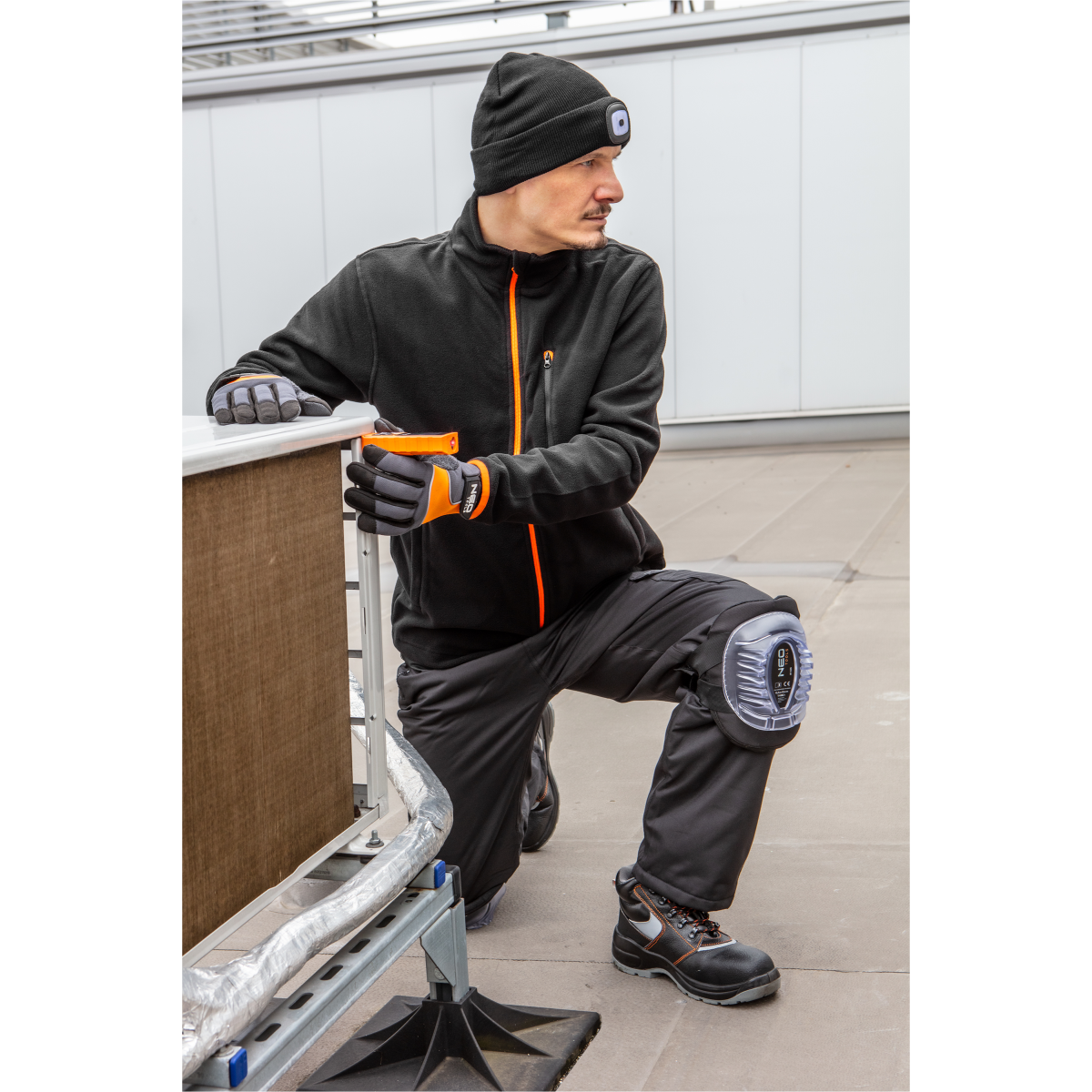 Polár munkaruha pulóver. A könnyű és kényelmes, meleg, 300 g/m² polármaximális használat komfortot biztosít alacsonyabb hőmérsékleteken végzett munkák során. A pulóvernek három nagy zippzáras zsebe van.