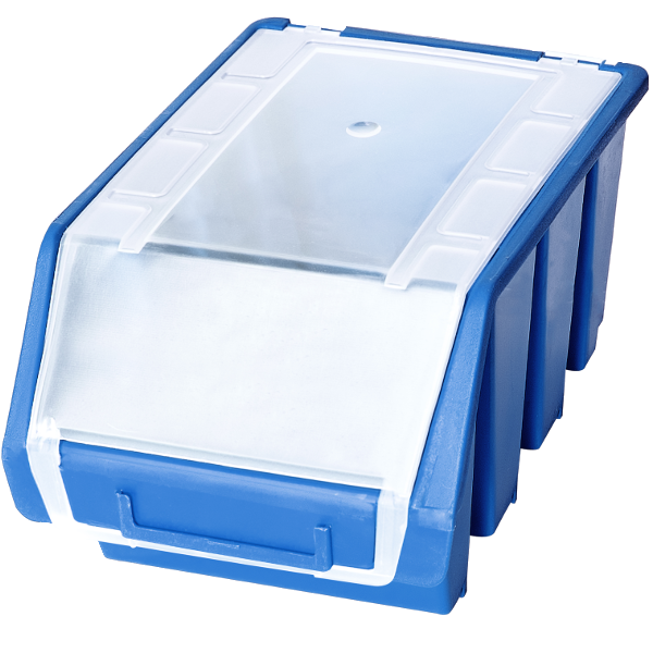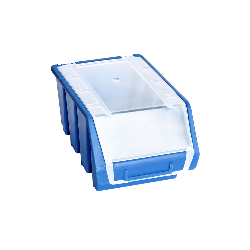 Ergonomikus kialakítású csavartartó doboz, tartós kivitelű, átlátszó fedéllel, címke tartóval, egymásra rakási lehetőséggel.