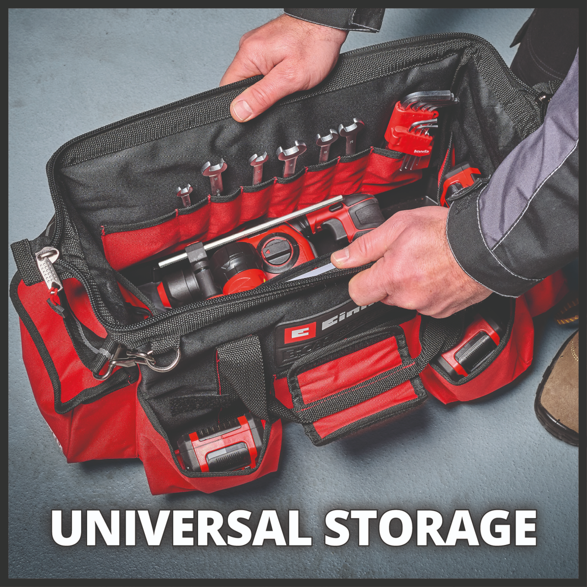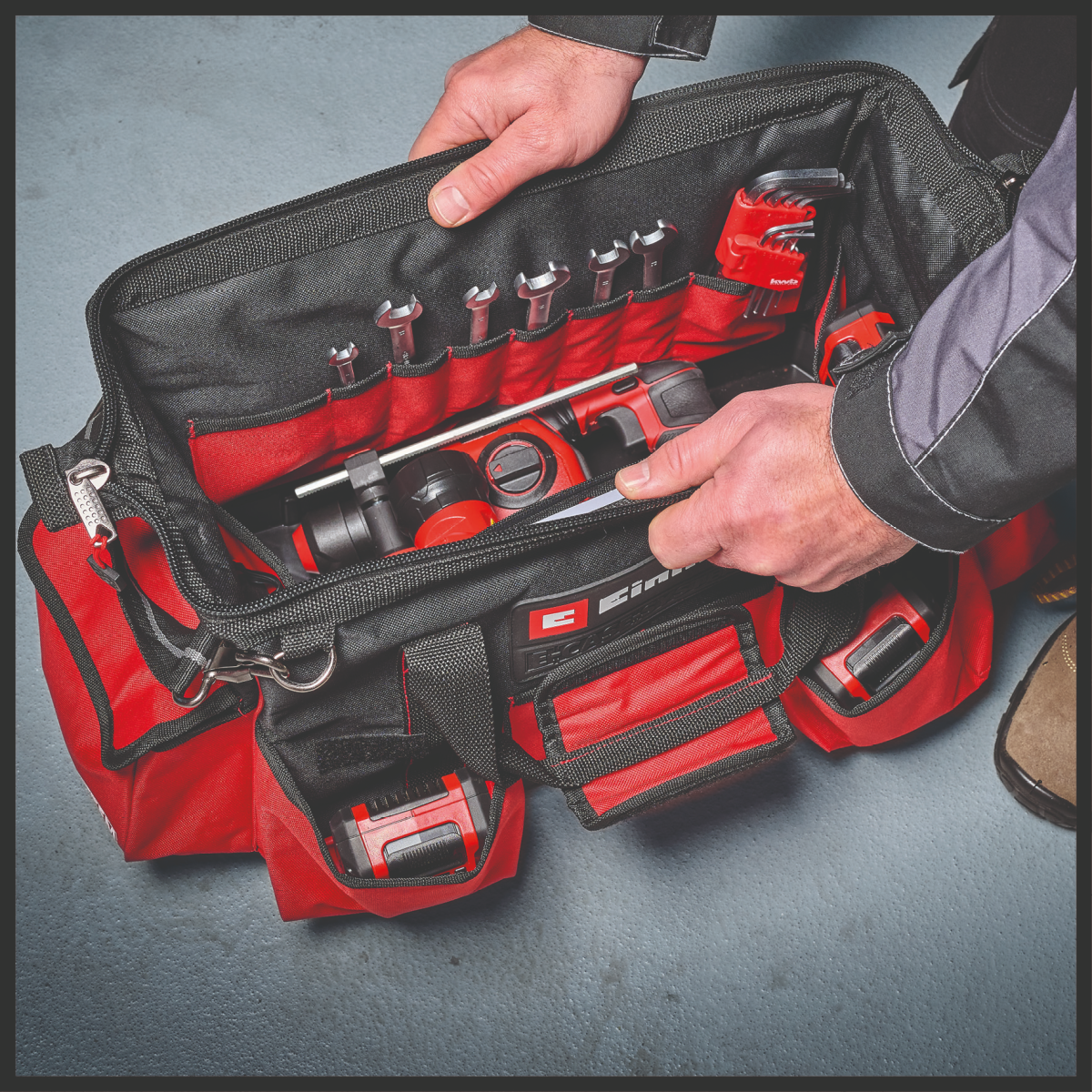 Ez a sokzsebes szerszámtáska ideális választás mindazoknak, akik az Einhell rendszereszközöket szeretnék mobil módon használni és jól rendszerezve tárolni.