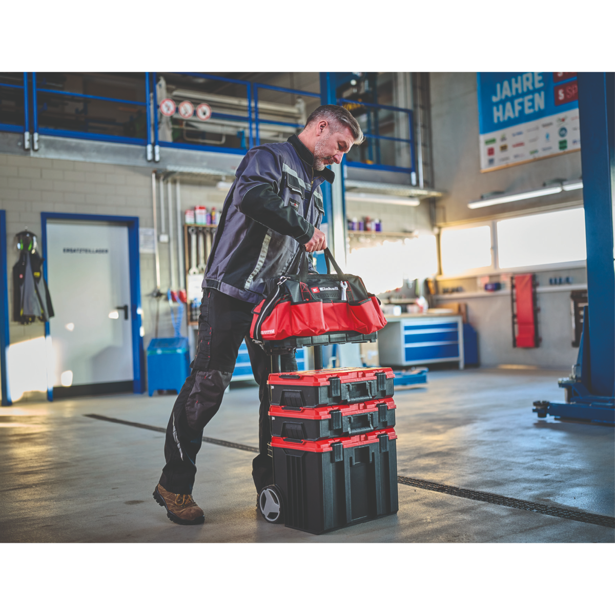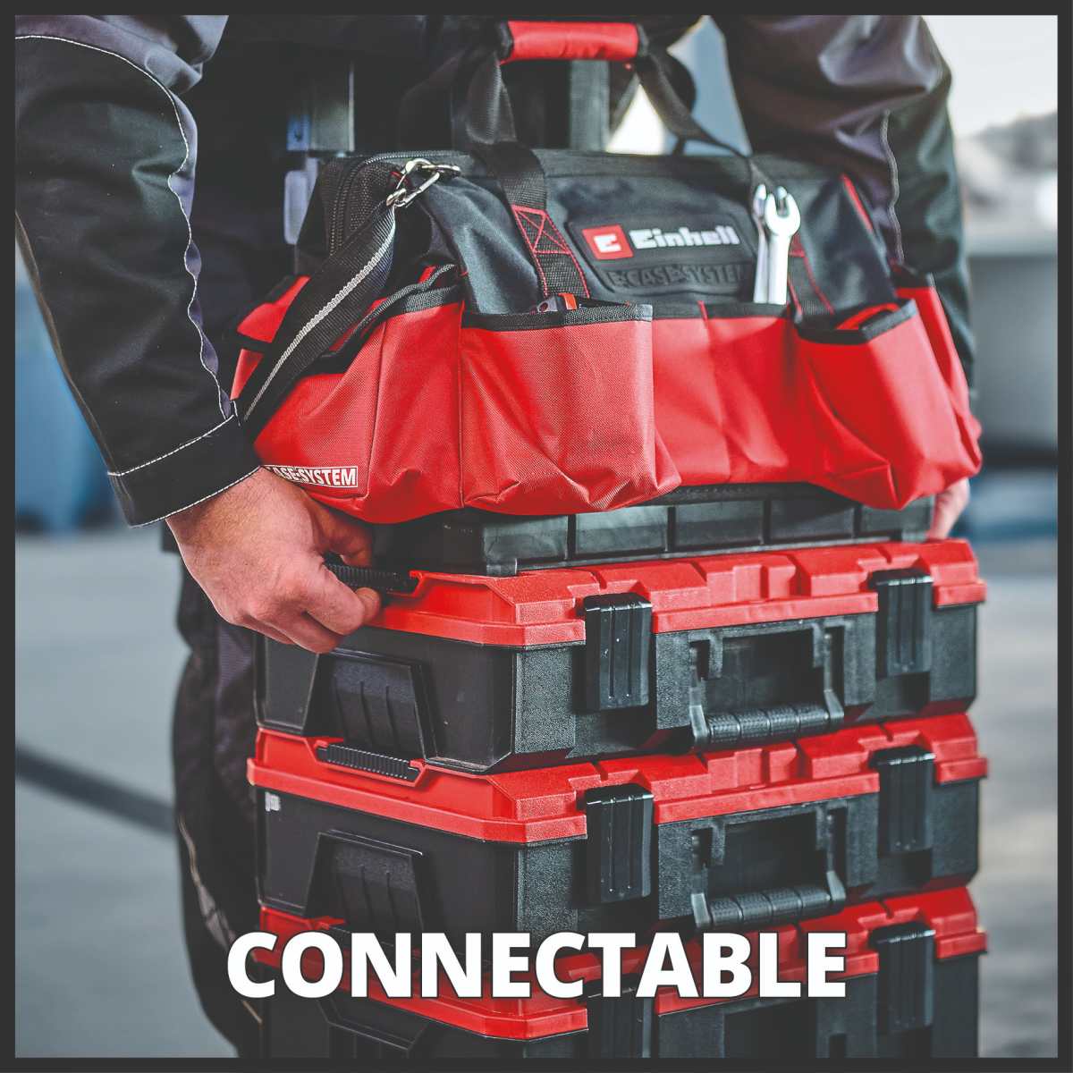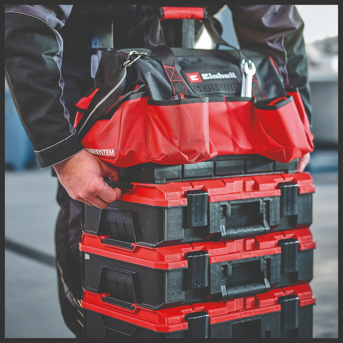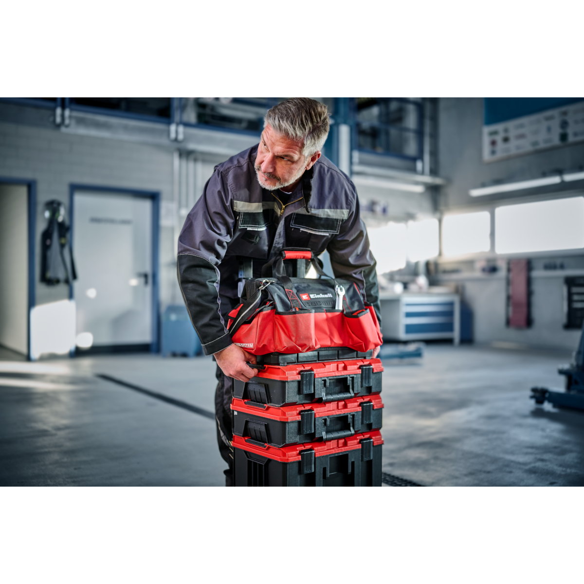 Az Einhell E-Case táska a jó minőségű E-Case rendszer rugalmas kiegészítője, amelyet kifejezetten a kéziszerszámok, akkumulátoros gépek és tartozékok rendszerezett szállítására terveztek.