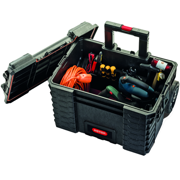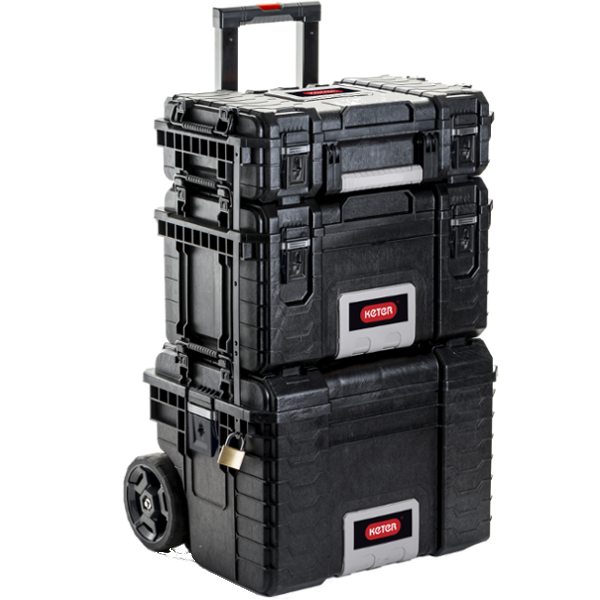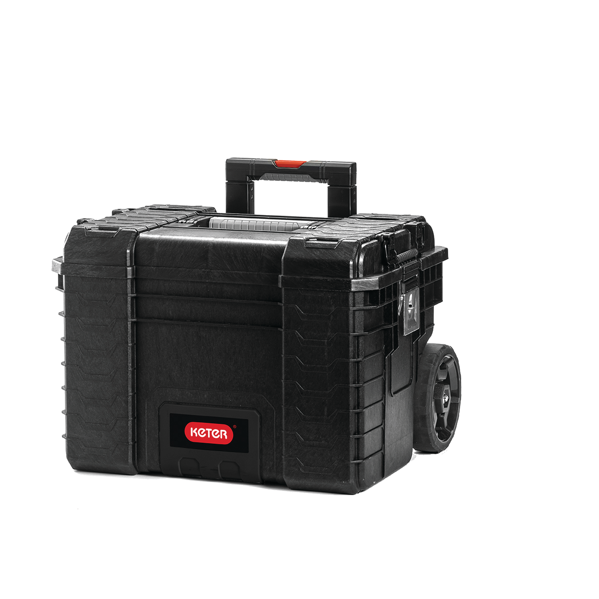 Gear rolling garázs 22" Keter. Mérete: 48x56,4x46,5 cm. Professzionális szerszámosláda nehezebb szerszámok tárolására, speciális záró mechanizmussal és kerekekkel. integrált válaszfalak rendelkezik, valamint szállítást megkönnyítő fémfogantyúkkal - oldalsó és teleszkópos. Aszerszámosláda külön elemként kapható. Beépített tömítéssel a víz és a por bejutásának megakadályozása érdekében.A termék oldalain elhelyezkedő fém kapcsok segítségével több láda egymásra rögzíthető.