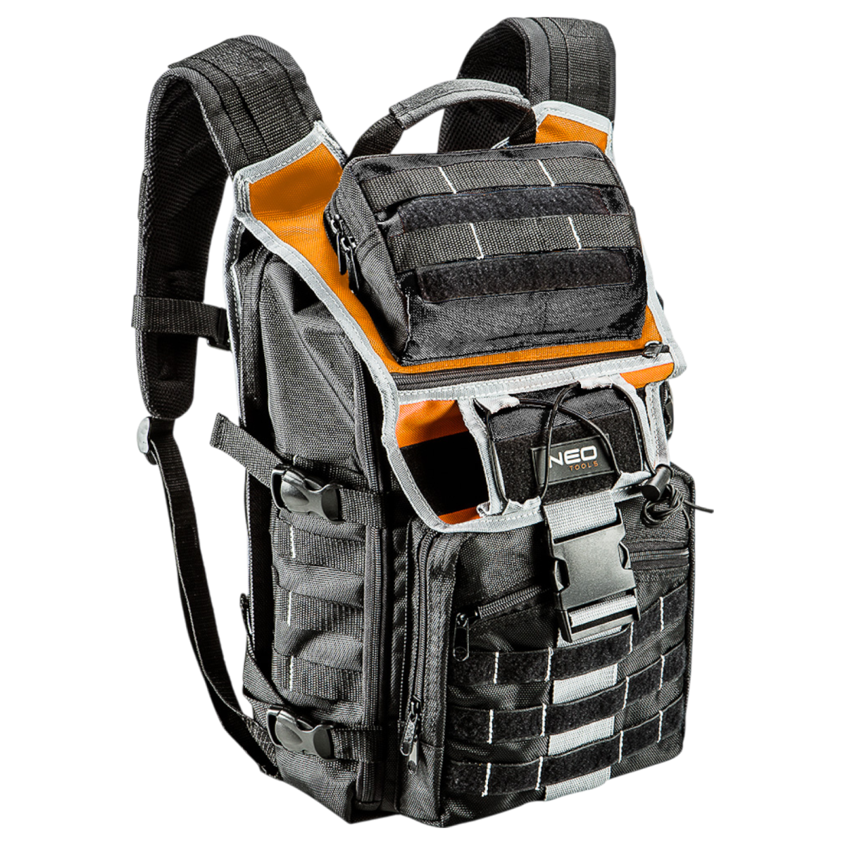 A Neo szerszámos hátizsák kiváló társ terepi munkához, ahol a szabad kezek és mobilitás elsődleges szempont.