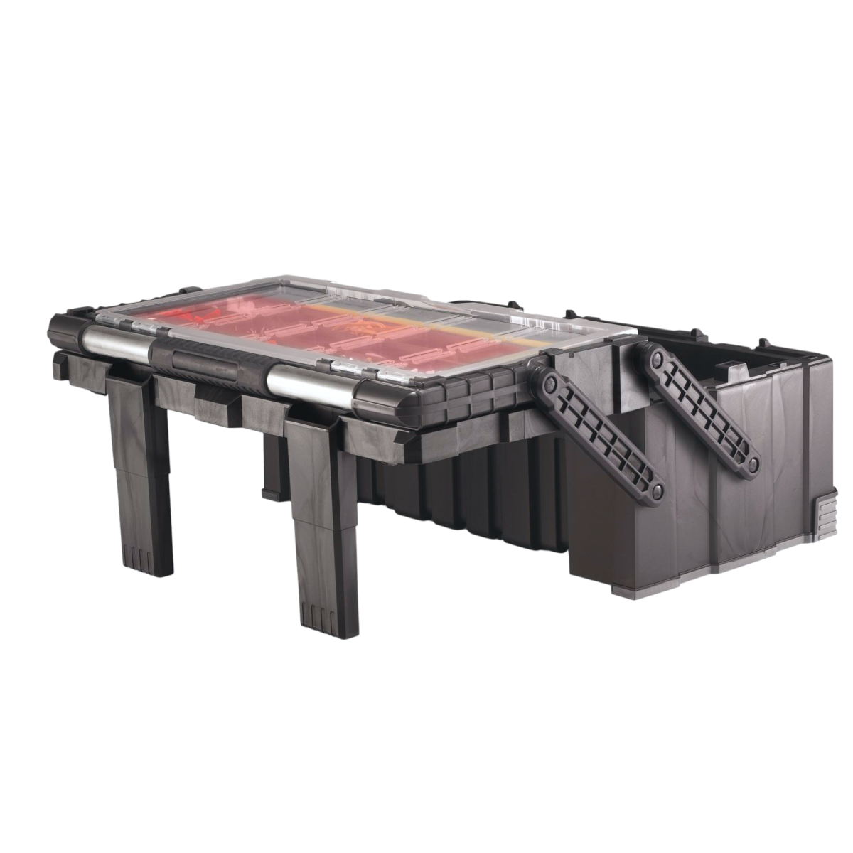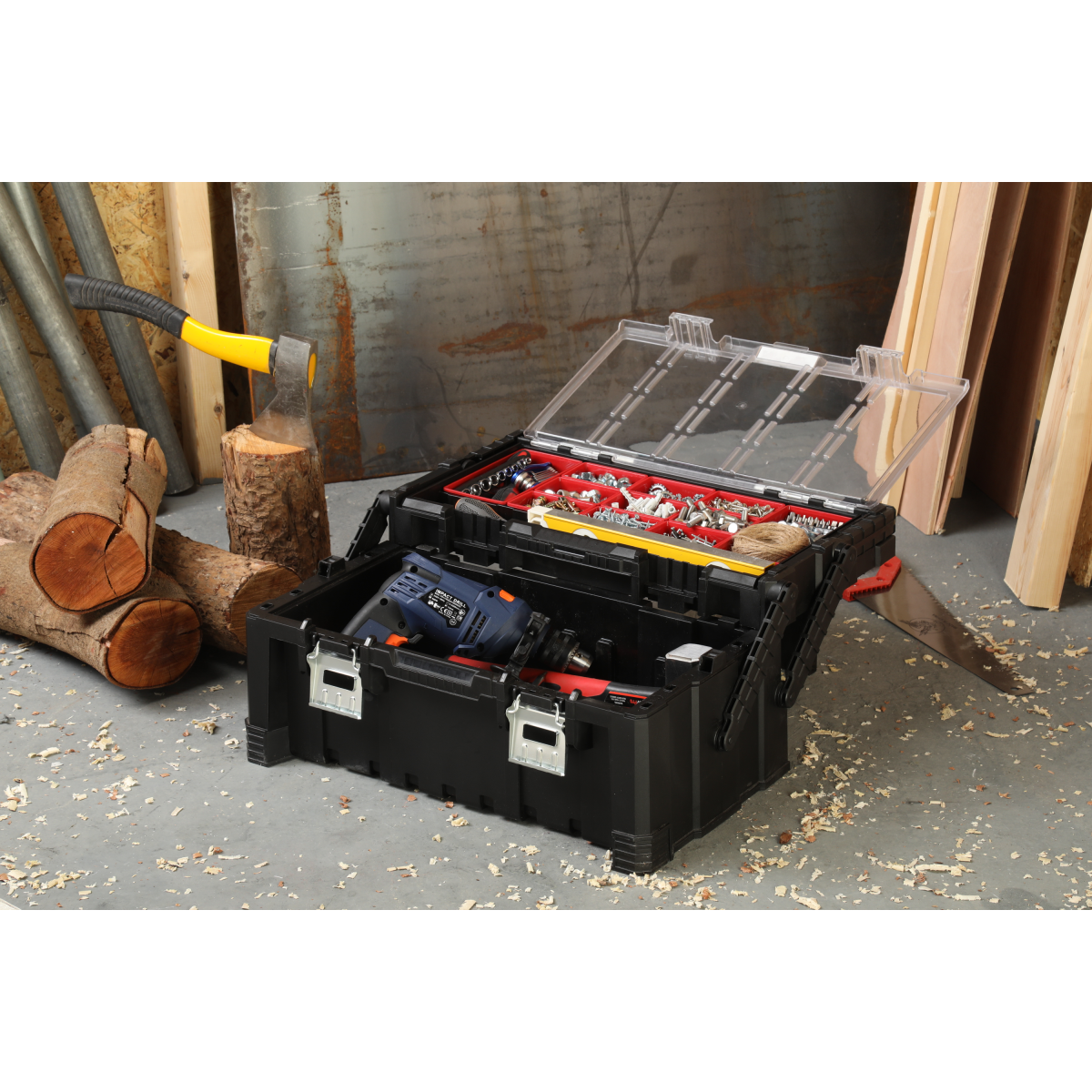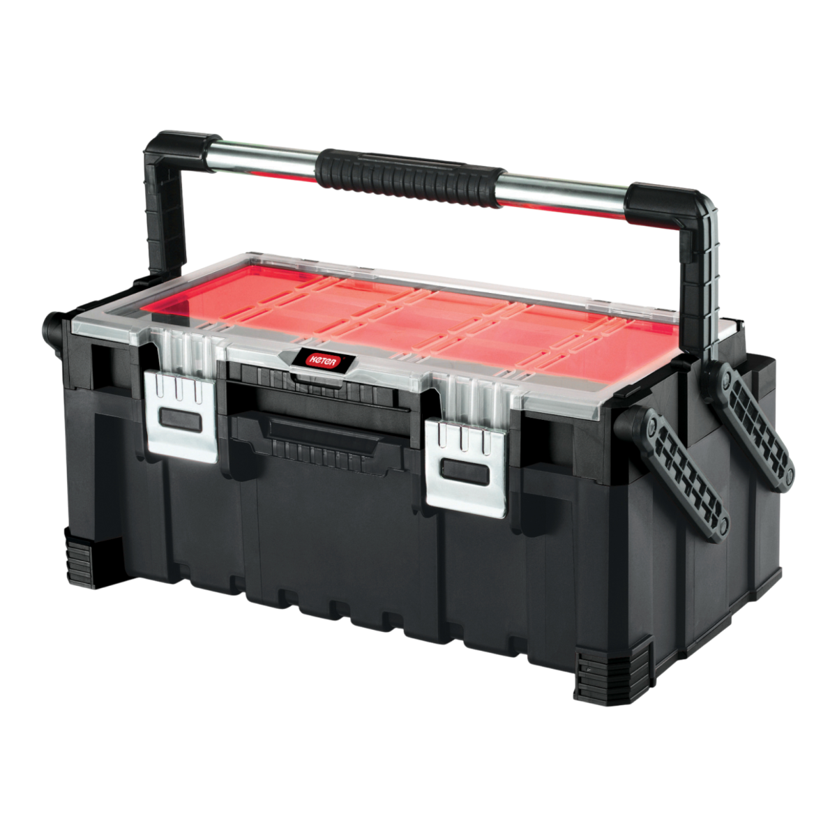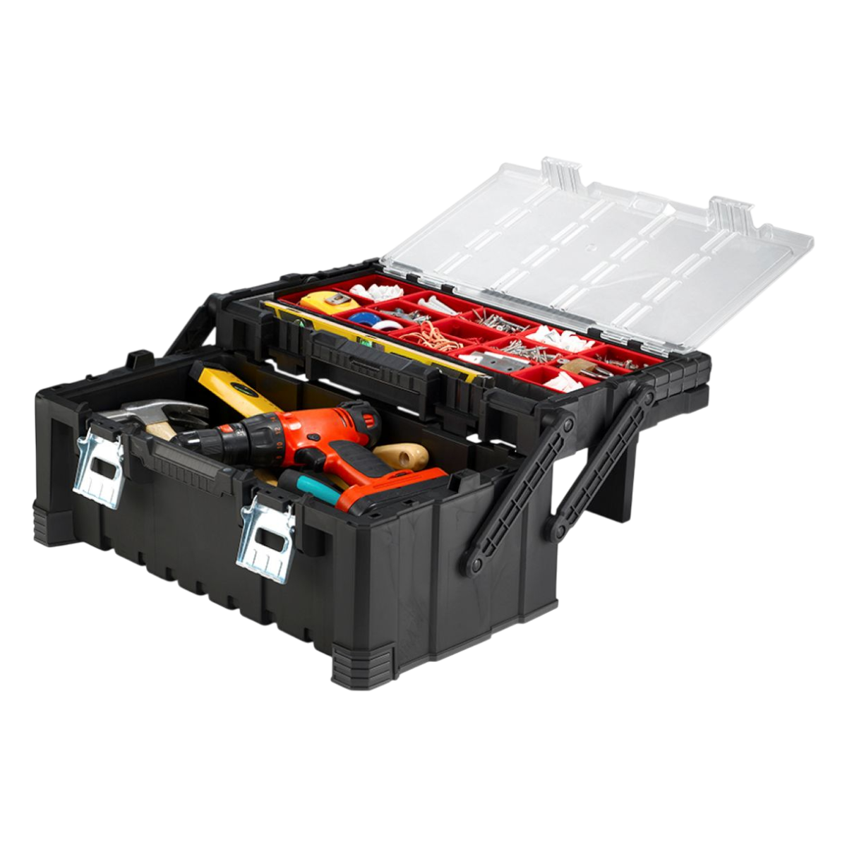 A Keter Cantilever Pro 22" szerszámosláda praktikus megoldást nyújt barkácsolóknak és szakembereknek egyaránt. Nagy teherbírásának köszönhetően biztonságosan tárolhatók benne a különböző méretű szerszámok és alkatrészek. A több szintes kialakítás révén a láda kinyitásakor a teljes tartalom jól átlátható, így minden szükséges eszköz gyorsan elérhető.