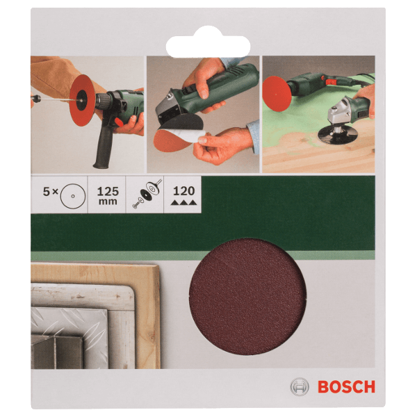 Bosch csiszolólap készlet fúrókhoz, 5 db. Univerzális csiszolási megoldás. A csiszolólap csavaros rögzítőrendszerrel rendelkező alátéttányérokhoz használható. Átmérő: 125 mm. Szemcsézet: 120.