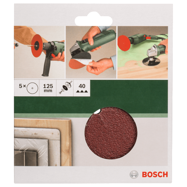 Bosch csiszolólap készlet fúrókhoz, 5 db. Univerzális csiszolási megoldás. A csiszolólap csavaros rögzítőrendszerrel rendelkező alátéttányérokhoz használható. Átmérő: 125 mm. Szemcsézet: 40.