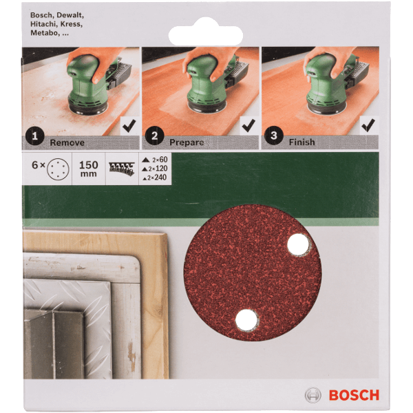 Bosch csiszolólap 6db 150mm g:60/120/240 rezgőcsiszolóhoz