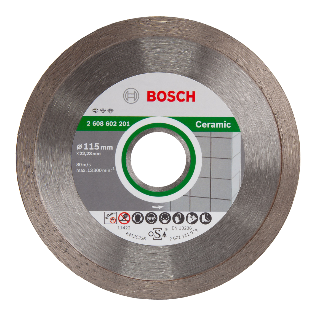 Bosch gyémánt bevonatos darabolótárcsa folyamatos vágóéllel kerámiacsempékhez. Tiszta vágás, nagy sebességgel minden csempében. A darabolótárcsa szinterezett vágóperemmel rendelkezik. Tárcsaátmérő: 115 mm. Furatátmérő: 22.23 mm.