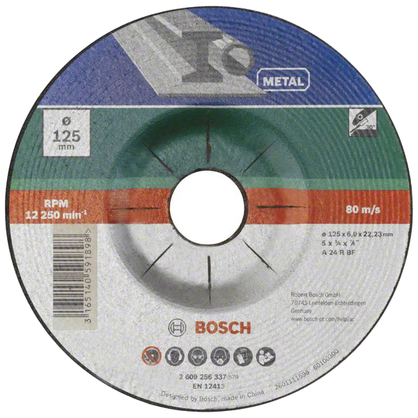 Bosch nagyolótárcsa fémekhez a gyors és energiatakarékos munkavégzés érdekében. Hosszú élettartammal rendelkezik a gondosan kiválasztott alapanyagoknak, a modern gyártási módszereknek és a szigorú minőségnek köszönhetően. Süllyesztett középrész a falak közelében és a szűk helyeken végzett munkákhoz. A tárcsa háromrétegű üvegszálhálós merevítése biztosítja a maximális munkabiztonságot. Mérete: 125 mm x 6 mm. Furatátmérő: 22.23 mm.