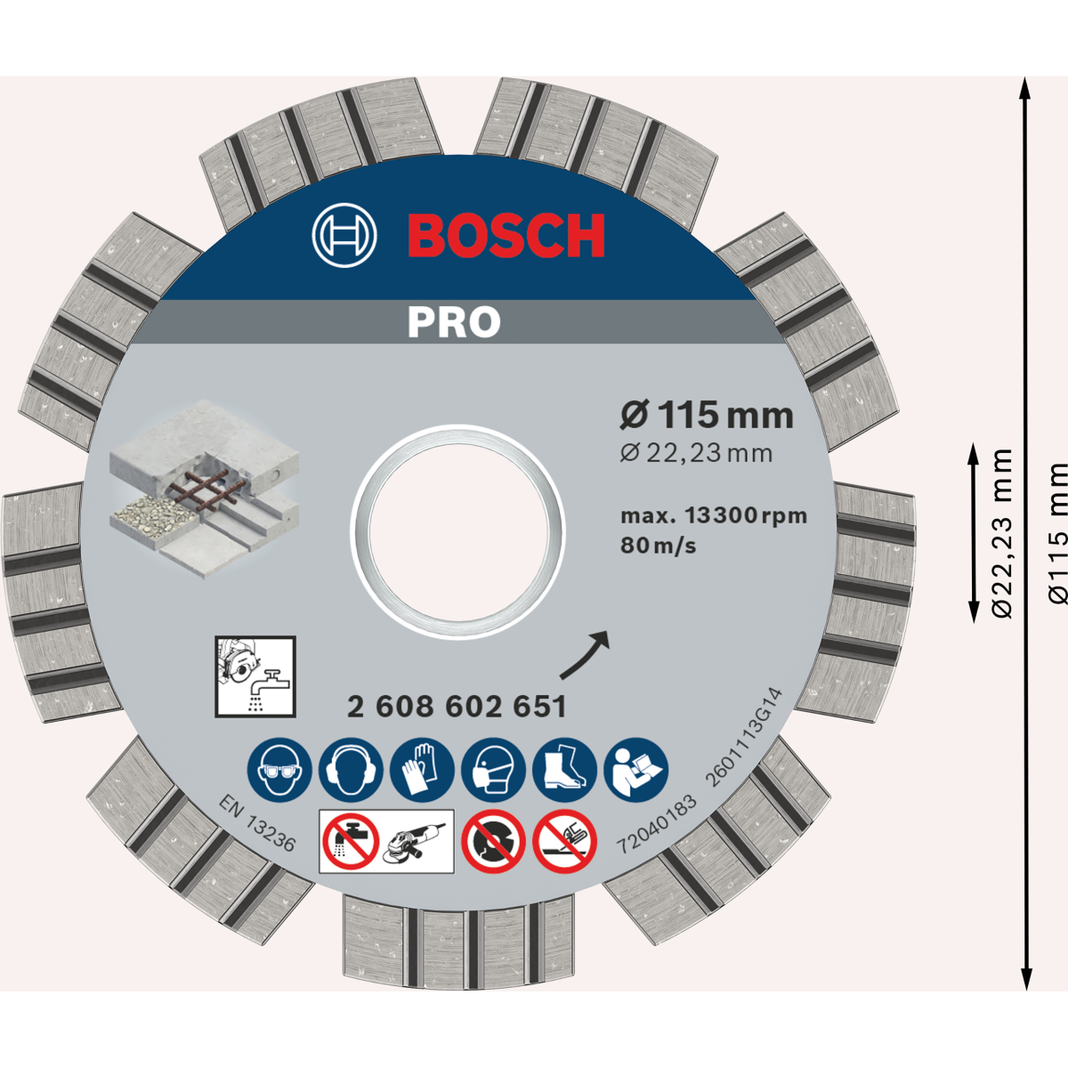 A Best for Concrete gyémánt darabolótárcsa lehetővé teszi beton gyors vágását. Lézerhegesztett, 15 mm magas gyémánt vágószegmensei biztosítják a gyors vágáshoz szükséges erőt. Gyorsítósávokkal rendelkezik, amelyeket a gyémánt szegmensekbe építenek be, és minimalizálják az oldalsúrlódást, lehetővé téve a gyors munkát. Továbbá optimalizált gyémántmátrixa a leggyorsabb vágást teszi lehetővé. Használja ezt a tárcsát mindenféle beton vágásához.
