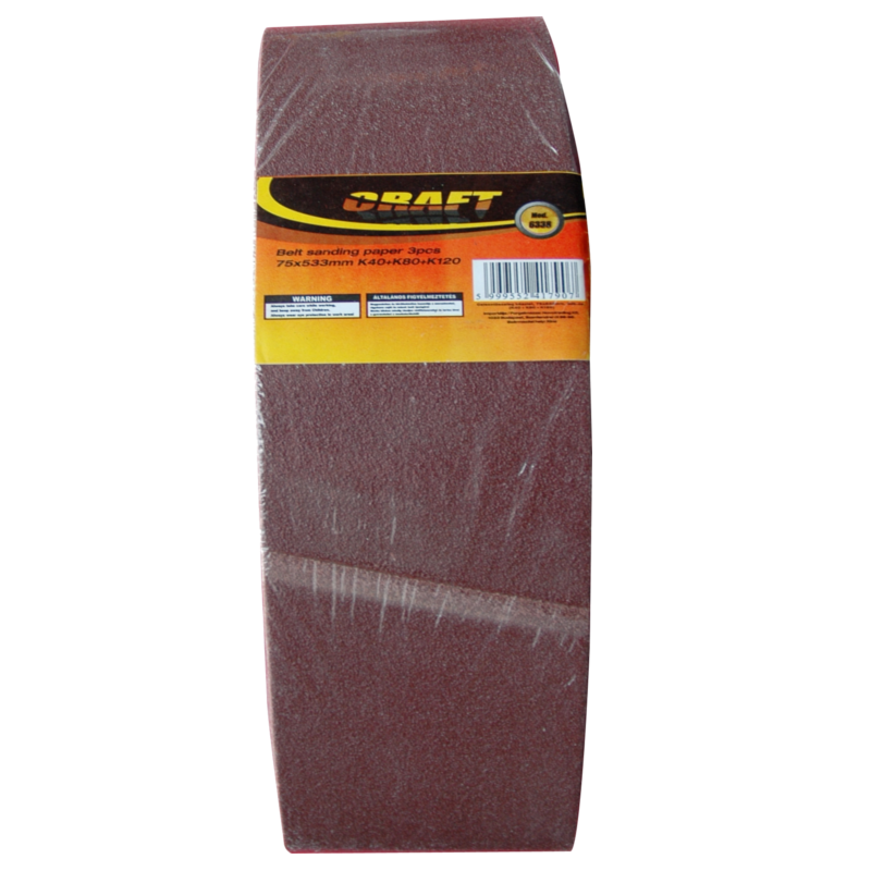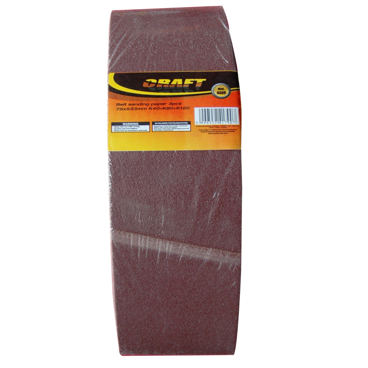 3 darabos csiszolószalag készlet, 75 x 533 mm méretben.