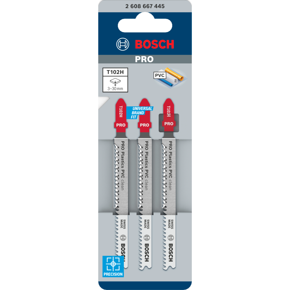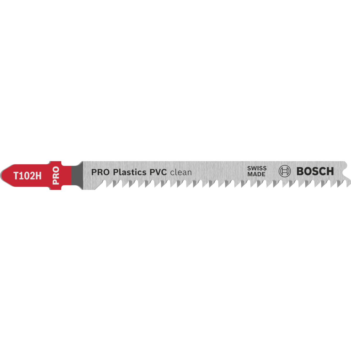 Szúrófűrészekhez; a T 102 H Clean for PVC szúrófűrészlap műanyagok tiszta, egyenes vágására alkalmas; precíziósan köszörült fogazata és kúposra csiszolt lapja miatt tiszta vágásra alkalmas; fog geometriája meggátolja az olvadást és a folytonos forgács képződését PVC vágása során; minden T befogószárú szúrófűrészhez használható.