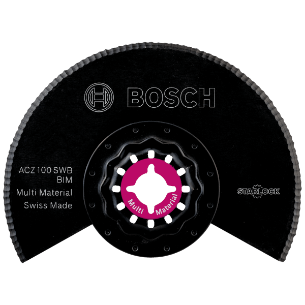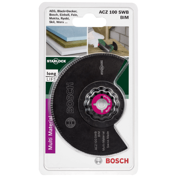 Bosch ACZ 100 SWB bimetál cakkozott szegmens fűrészlap multifunkciós rezgőfűrészekhez. Használható kiálló szigetelőanyagok, karton, szőnyeg, gumi, bőr méretre vágásához is. Bimetál anyaga biztosítja a hosszú élettartamot.