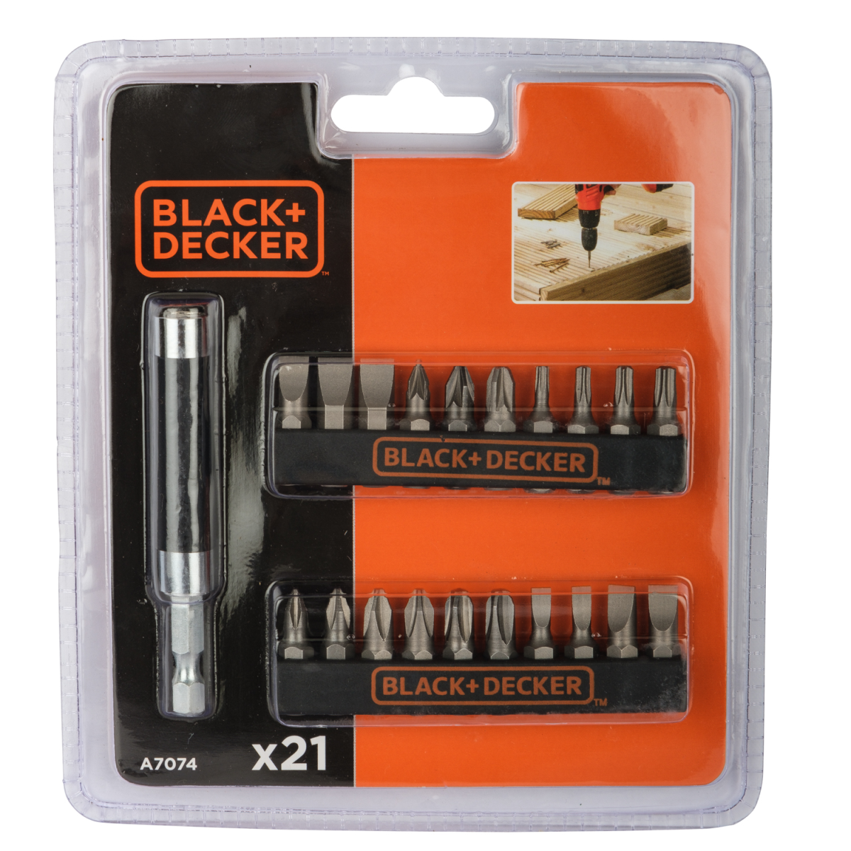 Black+Decker csavarozókészlet 21 részes. Sokoldalú készlet mindenféle csavarozási munkához.
