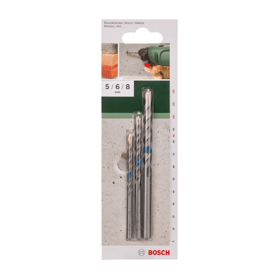 Bosch betonfúrószár 3 db-os készlet ütvefúrókhoz és kis fúrókalapácsokhoz. Csúcsa ütésálló keményfémből készült, ami precíz fúrást tesz lehetővé. Használható furatok készítésére betonban, kőben és falazatban. Hengeres befogószárú. A készlet tartalma: 5 mm / 6 mm / 8 mm.
