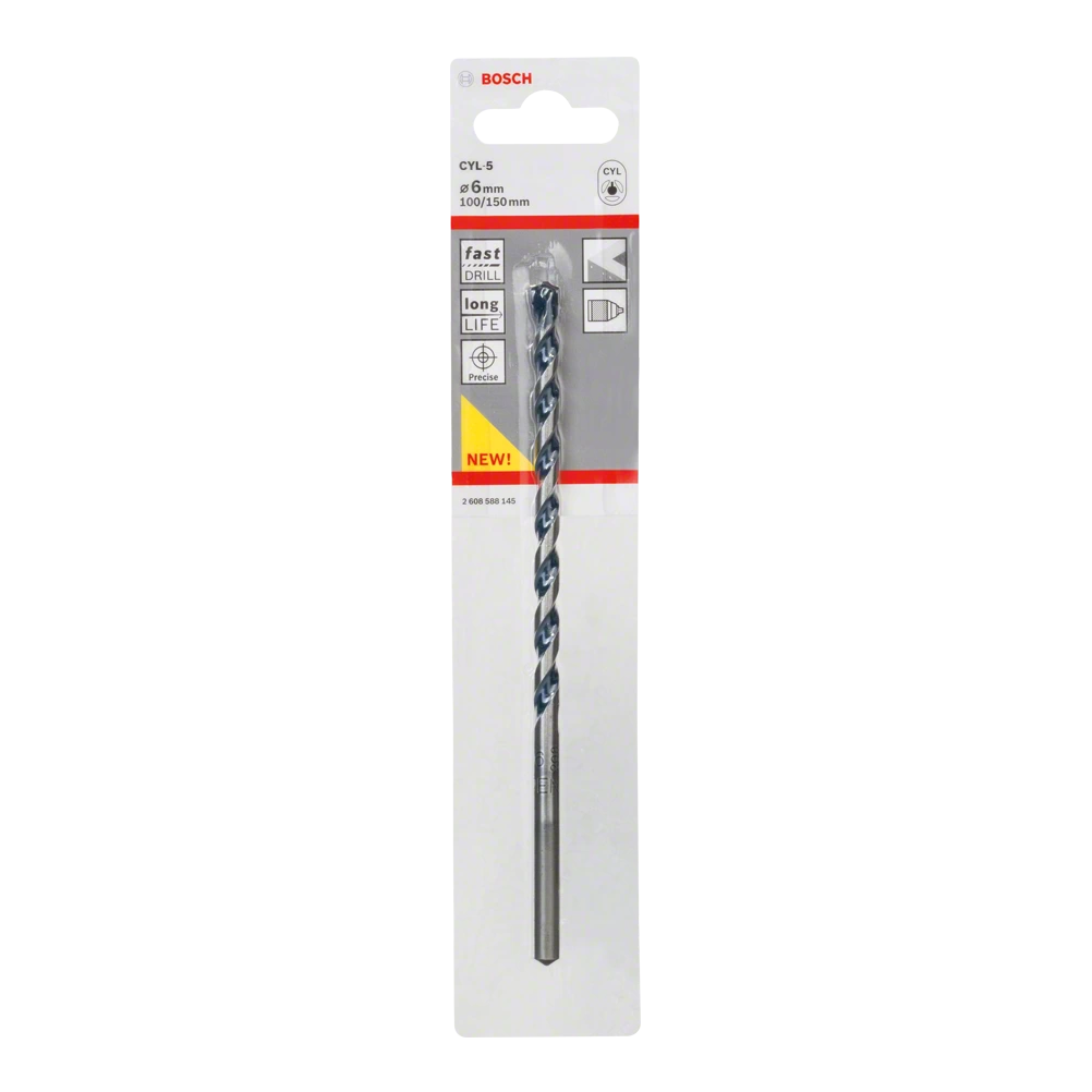 Bosch CYL-5 betonfúrószár fúrógépekhez, ütvefúrókhoz. A CYL-5 fúrószár rendkívül hosszú élettartamot garantál rögzítőfuratok betonba és kőbe való fúrása során. Keményfém keverék anyaga és gyémántköszörülésű vágóéle kopásállóvá teszi a fúrószárat. 2 hornyos vario kivitele csökkenti a súrlódást, ami nagyszerű poreltávolítást biztosít és csökkentik a használatból eredendő kopást. Hengeres befogószára hárompofás fúrótokmányokkal kompatibilis. Átmérő: 6 mm. Munkahossz: 100 mm. Teljes hossz: 150 mm.