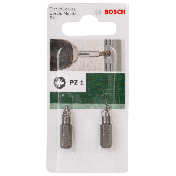 Bosch csavarozóbit PZ 1, 25 mm. Egyszerű és megbízható csavarozás a Bosch normál minőségű csavarozóbitjeivel. Extra kemény fémből készült, hogy minden alkalmazásnál megállja a helyét. Pozidriv csavarokhoz. Univerzális befogókban vagy közvetlenül IXO akkumulátoros csavarozógépben való használathoz.