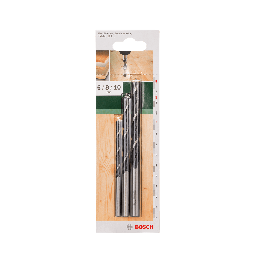 Bosch 3 részes fafúrószár készlet. Megfelelő méretű fafúrószárak a professzionális fúrási eredményért. Központosító csúccsal vannak ellátva a precíz előfúráshoz és vállmaró segíti a pontos furatkészítést. A készlet tartalma: 6 mm / 8 mm / 10 mm.