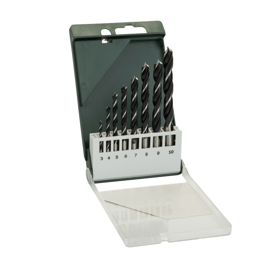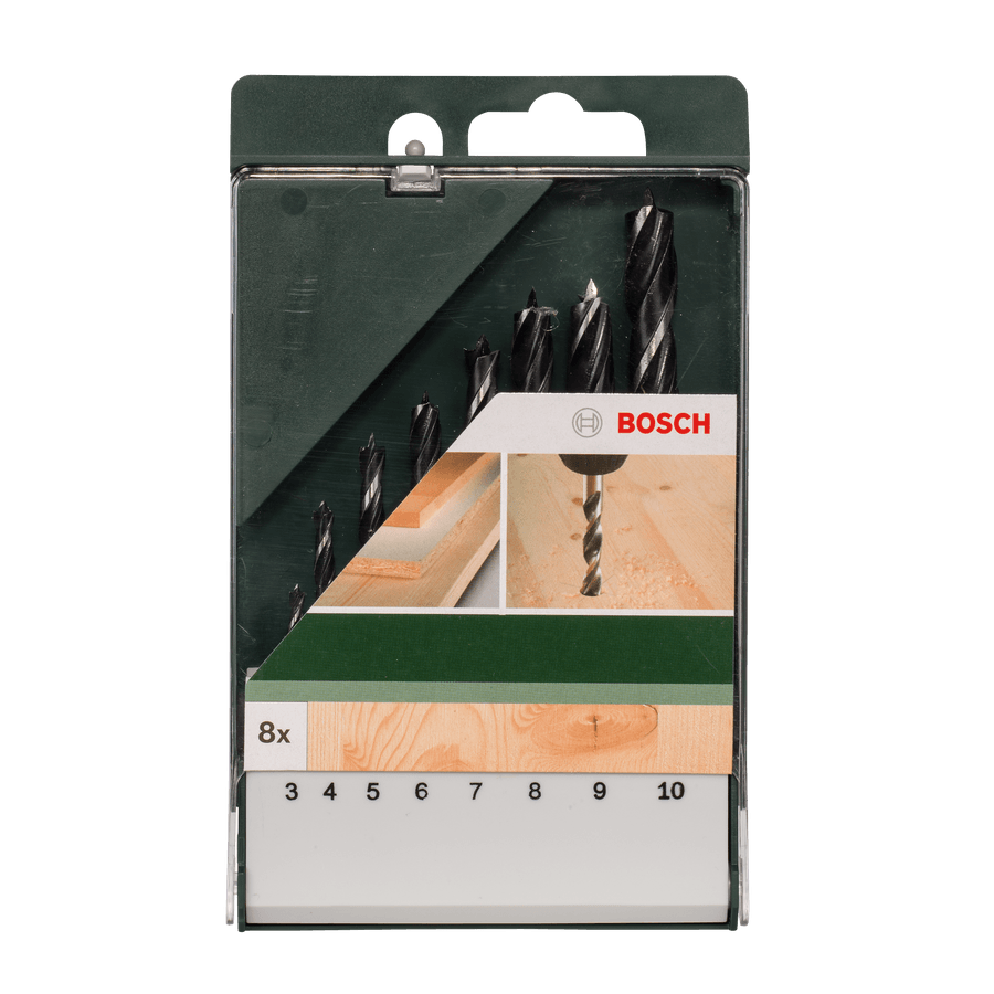 Bosch fa spirálfúrószár készlet a precíz, szakadásmentes és tiszta fúrásokhoz fában. 8 részes. Központosító csúccsal vannak ellátva a precíz előfúráshoz és vállmaró segíti a pontos furatkészítést. Hengeres befogószárú. A készlet tartalma: 3 mm / 4 mm / 5 mm / 6 mm / 7 mm / 8 mm / 9 mm / 10 mm.