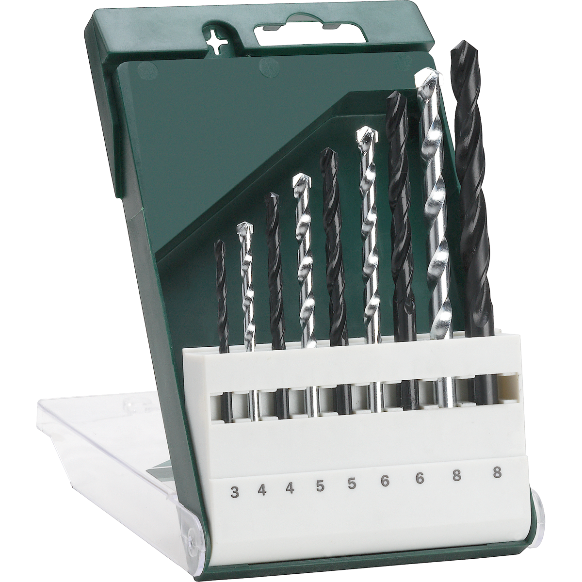 9 részes vegyes fúrószárkészlet fémek és fa megmunkálásához. A fémekhez és fához használt leggyakoribb fúrószárméretek egyetlen készletben. Megmunkálható anyagok: acél/vastartalmú fém, falazat, betonvas, finom kőagyag.