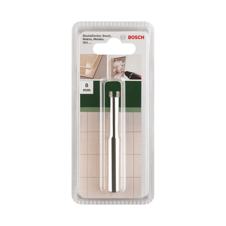 Gyémántbetétes fúró az egyszerű fúráshoz minden csempében. Nagy fúrási teljesítményű csempefúrók. A gyors és tiszta eredmények érdekében a lágy fali csempéktől a kemény padlólapokig. Terméskő, finom kőagyag, tetőcserép, mészhomokkő, fali és egyéb csempe megmunkálására alkalmas. Csak akkumulátoros szerszámokkal való nedves használathoz! Átmérő: 8 mm.