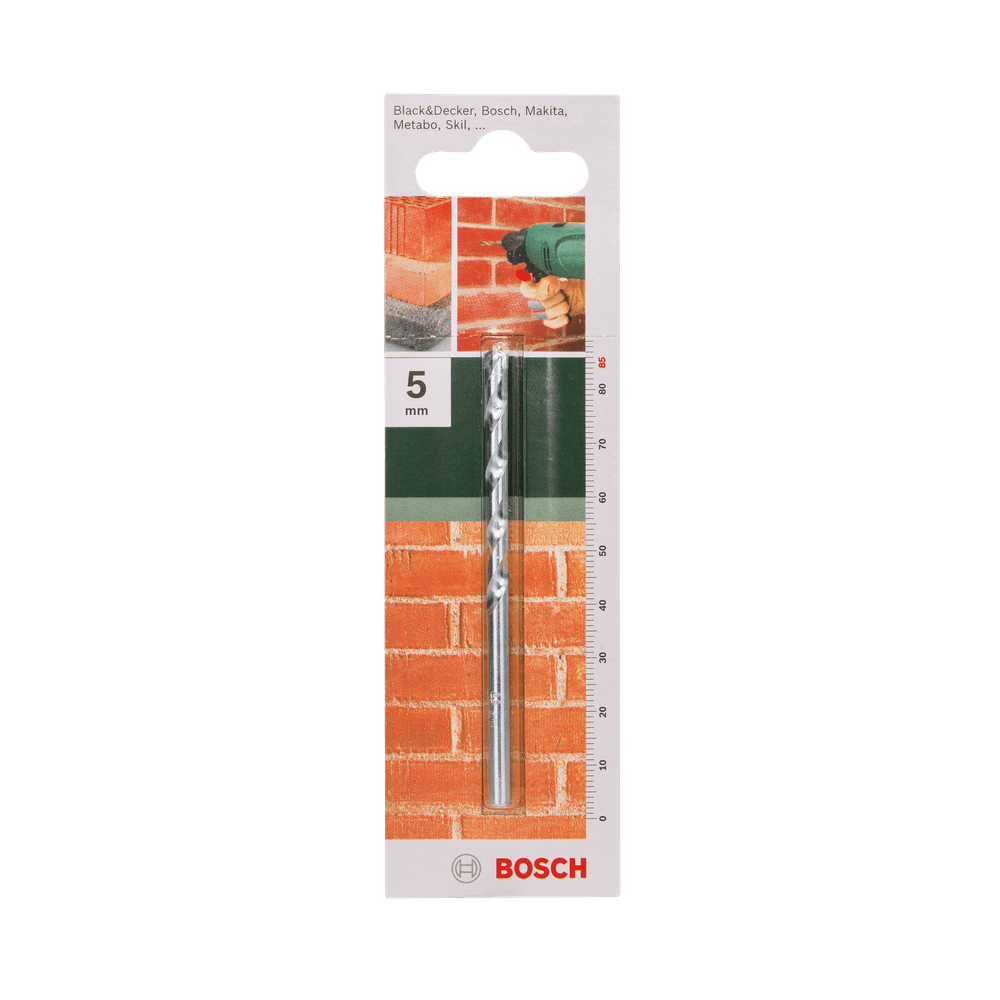 Bosch kőzetfúrószár. Normál minőségű fúrószár mindenfajta falazat gazdaságos fúrásához. Ütésálló keményfém fogazata hatékony és gyors fúrást tesz lehetővé könnyűbetonban, mészkőben és természetes kőben. Hengeres befogószárú. Átmérő: 5 mm. Szárátmérő: 4 mm. Munkahossz: 50 mm. Teljes hossz: 85 mm.
