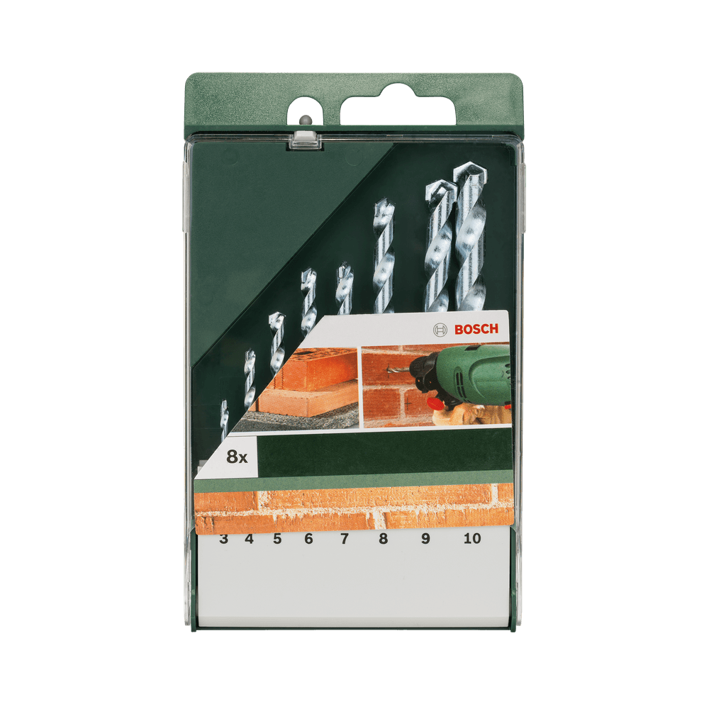 Bosch 8 részes kőzetfúrószár készlet. Normál minőségű fúrószárak mindenfajta falazat gazdaságos fúrásához. Ütésálló keményfém fogazatuk hatékony és gyors fúrást tesz lehetővé könnyűbetonban, mészkőben és természetes kőben. Hengeres befogószárral. A készlet tartalma: 3 mm / 4 mm / 5 mm / 6 mm / 7 mm / 8 mm / 9 mm / 10 mm.