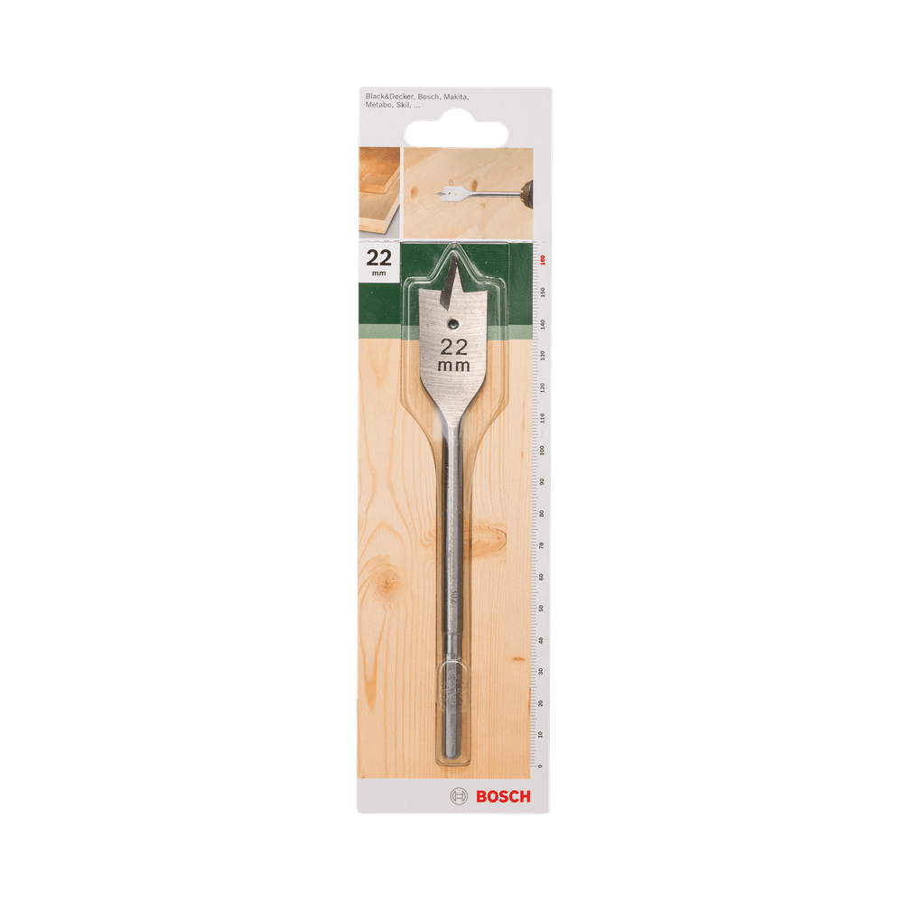 Bosch lapos marófúrószár fúrógépekhez. Ideális gazdaságos és gyors fafúráshoz. Központosító csúccsal a fúrás pontos megkezdéséhez. A két vágóél biztosítja a pontos vágást. Nemesített acél alapanyaga pedig hozzájárul a marófúrószár hosszú élettartamához. Hatlapú befogószárral. Átmérő: 22 mm. Szárátmérő: 5.5 mm. Munkahossz: 110 mm. Teljes hossz: 160 mm.