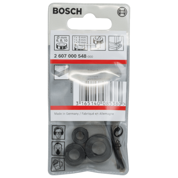 Fúrógépekhez/csavarozókhoz; a készlet 3 darab szerszámacélból készült mélységütközőt tartalmaz; három féle átmérő (6 mm, 8 mm és 10 mm) a pontos fafúráshoz.
