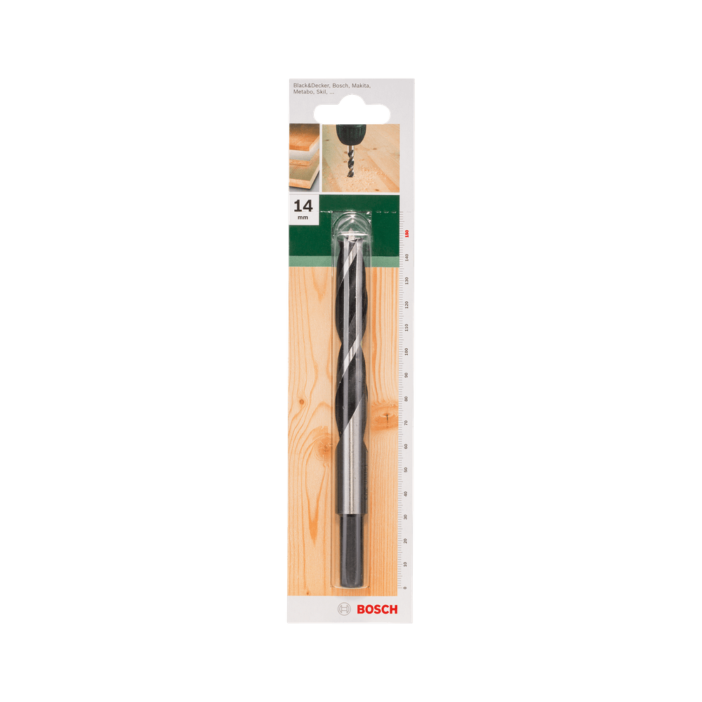 Bosch spirálfúrószár fához. Szakításmentes fúrást biztosít puha- és keményfában. Központosító csúccsal, hogy a furatok pontosan ott induljanak, ahol kell. A metszősarkantyú segíti a tiszta furatok készítését. Hengeres befogószárral. Átmérő: 14 mm. Szárátmérő: 10 mm. Munkahossz: 95 mm. Teljes hossz: 150 mm.