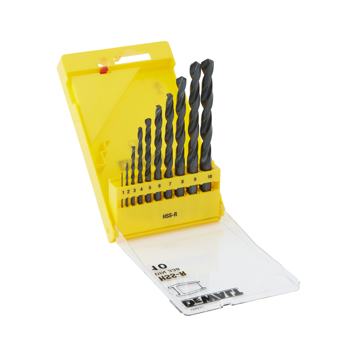 A készlet tartalmaz: 10 darab fúrószárat, melyek átmérője 1, 2, 3, 4, 5, 6, 7, 8, 9, 10 mm. Műanyag dobozban kerül értékesítésre. Univerzális fémfúrók. A forró kovácsolás során nagysebességű DIN 338 acélból készülnek. Hengeres jobb oldali spirálvágás és 118 ° -os szög. H8 átmérő tűrés.