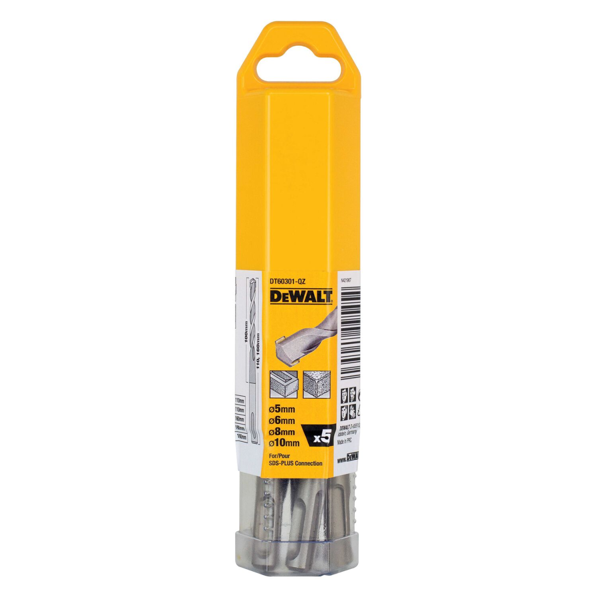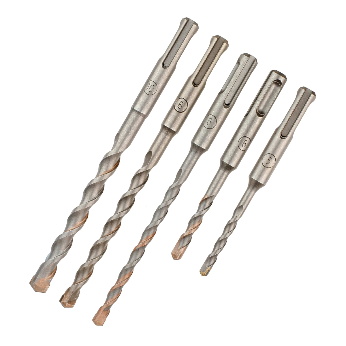 Tartalma: SDS plus fúrószárak, 5 db: 1db 5x110; 1 db 6x110; 1 db 6x160;1 db 8x160; 1 db 10x160.