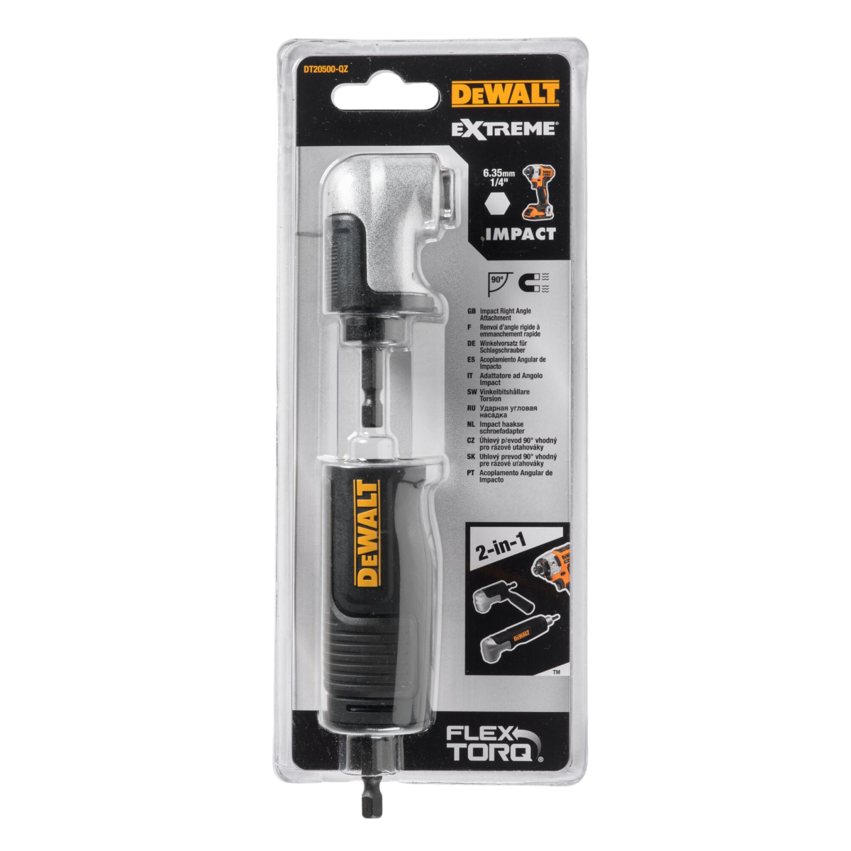 Ez a DeWALT DT20500-QZ sarokcsavarozó adapter tökéletes választás a nehezen hozzáférhető helyeken történő munkavégzéshez. A FLEX TORQ rendszerrel ellátott adapter 90 fokos szögeben működik és 140 mm hosszú. A szögfej mérete 38 mm x 65 mm, fogantyúval együtt pedig 38 mm x 140 mm. Az 1/4"-os HEX befogású adapter a maximális 43 Nm-es nyomatékkel hatékony és megbízható teljesítményt nyújt.