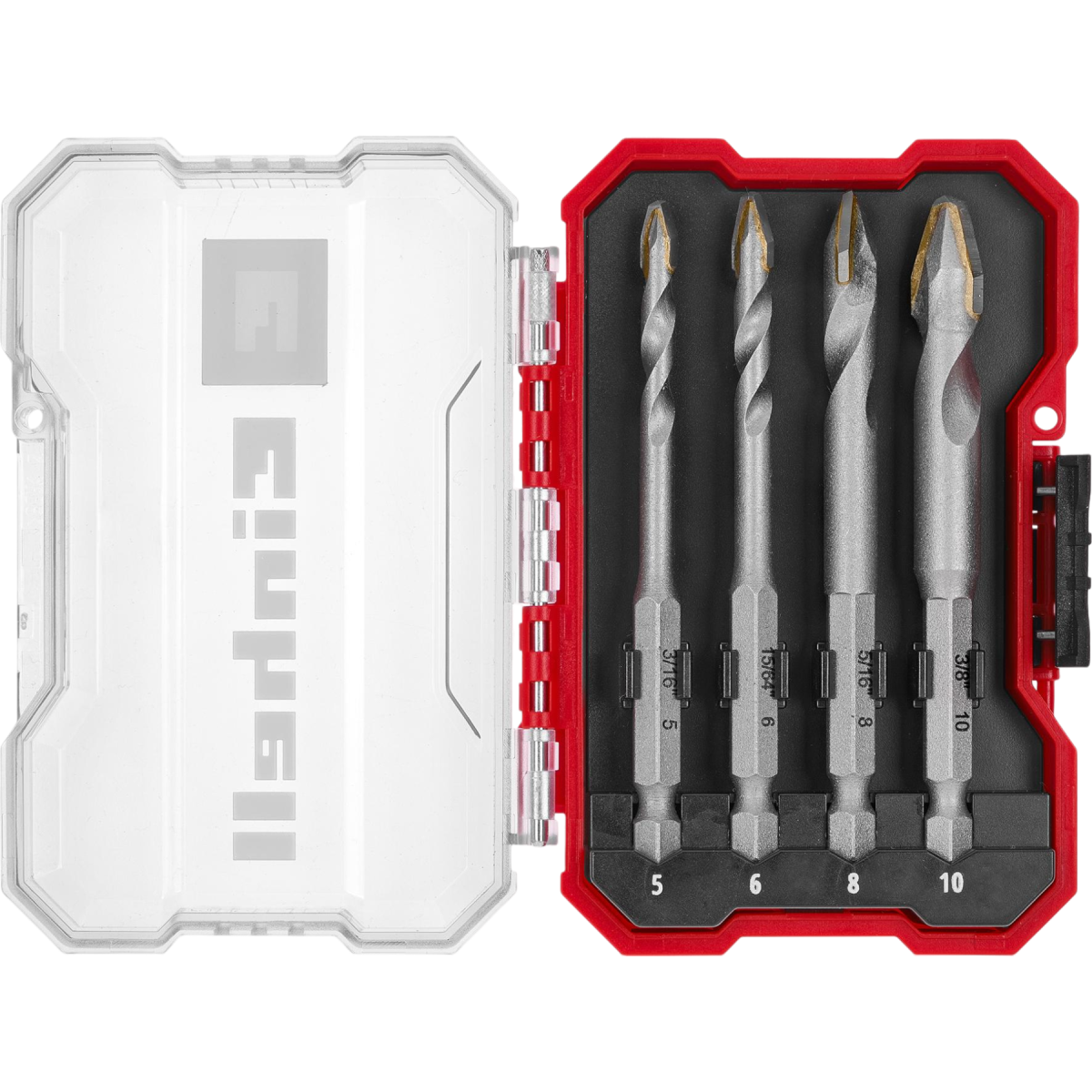 Az Einhell expert extra kemény porcelán fúrókészlet rendkívül robusztus keményfém betéttel rendelkezik, különösen éles vágóélekkel a legkeményebb anyagokhoz, mint például porcelán kőedény, márvány, padlócsempék, fali cserepek, tetőcserepek és üveg, a hangsúlyos középpontnak köszönhetően egyszerű, precíz fúrás lehetséges. A kettős spirál biztosítja a fúrópor hatékony szállítását, az optimális szellőzést és a fúrószár hűtését. Méretek: 5.0, 6.0, 8.0, 10.0 mm.