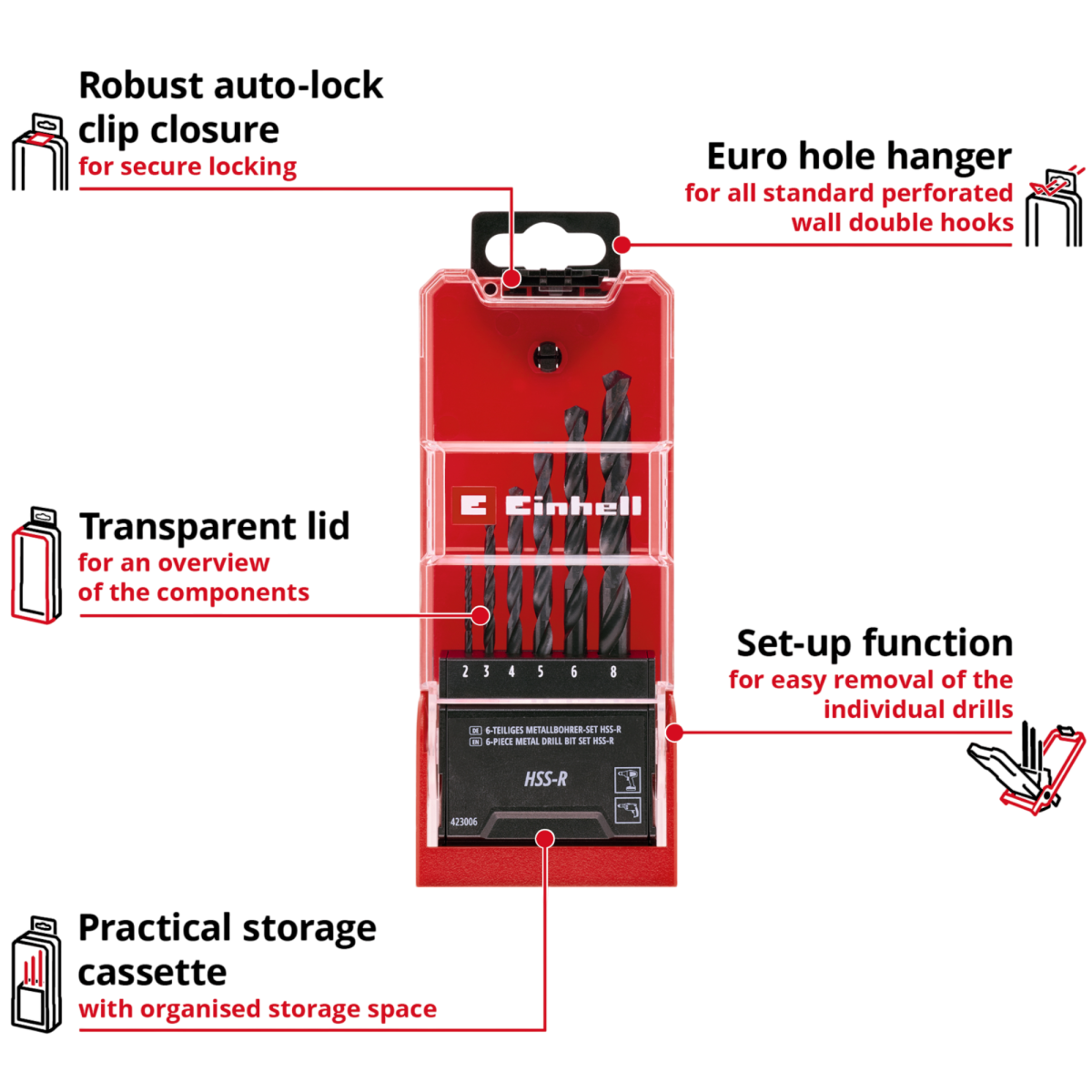 ✅ Tároló kazetta – állványfunkció, euro-furatos akasztó, automata reteszes zár