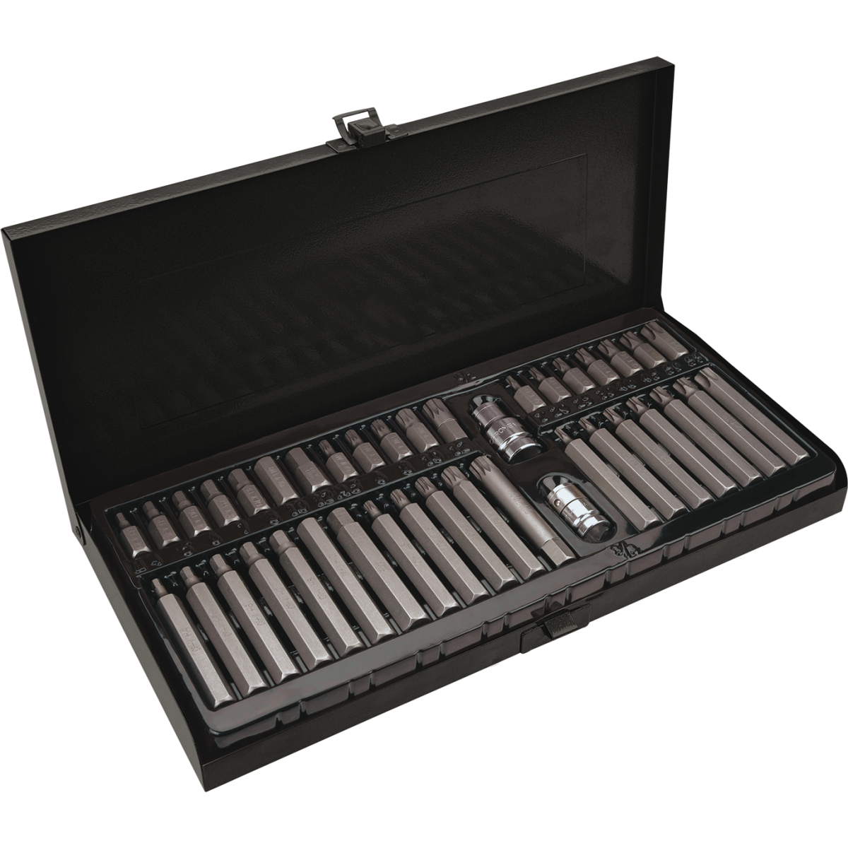 A NEO 40 elemes csavarhúzó bit készlet elemei kiváló minőségű króm-vanádium acélból készülnek. A készlet 30 mm és 70 mm hosszú imbusz, Torx, és Spline bitek bő választékát tartalmazza. A készletet két - ?"-os és ?"-os - bit befogó egészíti ki. A szerszám minőségét bizonyítja a gyártó által nyújtott 25 éves jótállás. A NEO márka a professzionális igényeket is kielégíti.