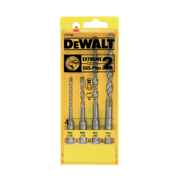4 darabos (5-6-8-10) SDS-Plus Extrem Fúrószárkészlet. A különleges lapka keménység hosszabb élettartamot és nagyobb teherbírást erdményez. Optimális spirálkiképzés hatékony porkivezetést tesz lehetővé. Az új csúcskialakítás gyorsabb behatolási sebességet, hosszabb élettartamot, gyorsabb fúrást és még nagyobb tartósságot biztosít. Az új EXTREME 2 SDS-Plus fúrószárak a legjobb tulajdonságokkal rendelkeznek a fúrási sebesség, élettartam és tartósság tekintetében. A különleges lapka keménység hosszabb élettartamot ad.