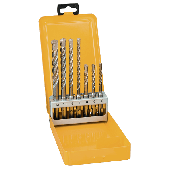 7 db-os (5, 6, 8, 6, 8, 10, 12) SDS-Plus EXTREME fúró készlet. A különleges lapka keménység hosszabb élettartamot és nagyobb teherbírást erdményez. Optimális spirálkiképzés hatékony porkivezetést tesz lehetővé. Az edzett fúrószár test extra szilárdságot és törésmentességet biztosít. Az új, 160 fokos csúcskialakítás gyorsabb behatolási sebességet, hosszabb élettartamot és gyorsabb fúrást biztosít. Az új EXTREME 2 SDS-Plus fúrószárak a legjobb tulajdonságokkal rendelkeznek a fúrási sebesség, élettartam és tartósság tekintetében.