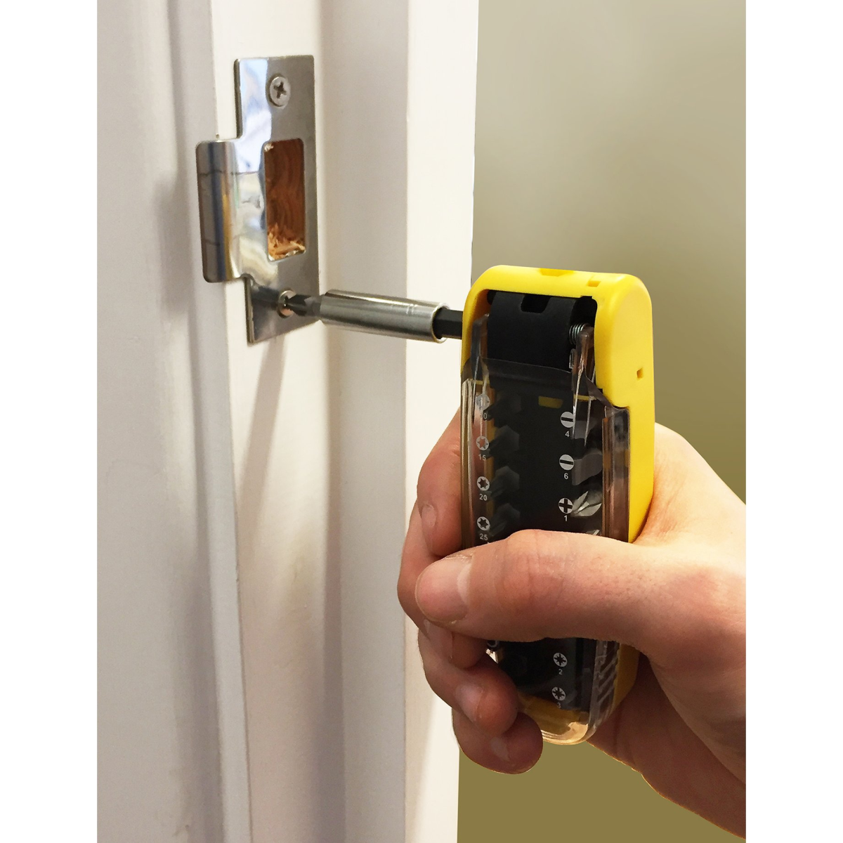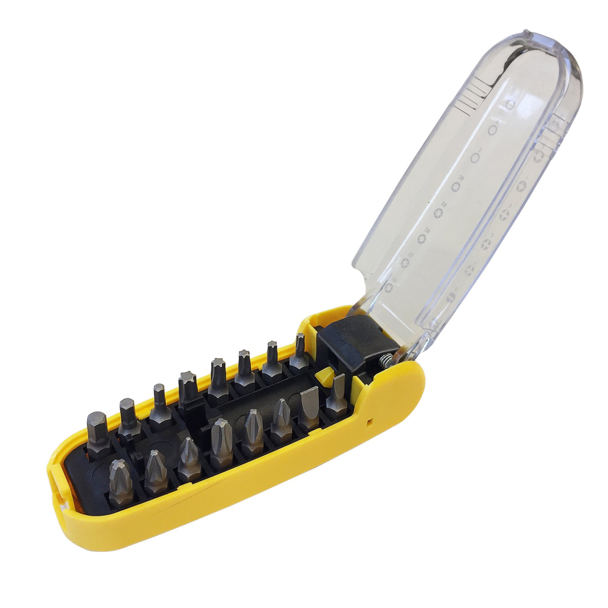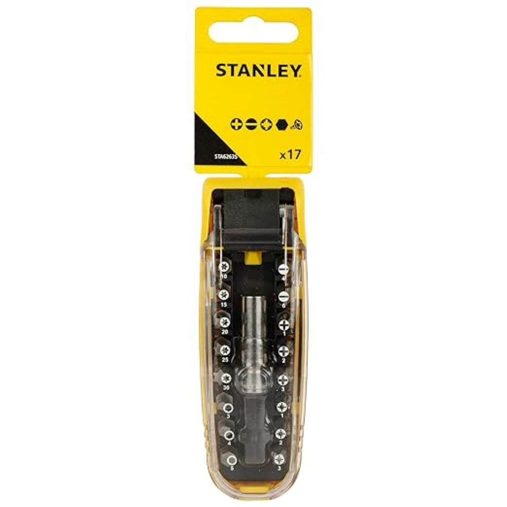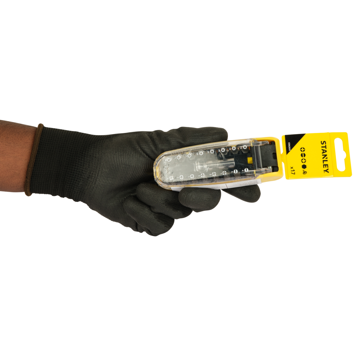 STANLEY® 17 darabos csavarozó bitkészlet mágneses végű adapterrel praktikus tárolódobozban. Ideális elektromos fúrógépben való használatra, illetve minden csavarozási feladathoz fém, fa, műanyag és gipszkarton anyagokban.