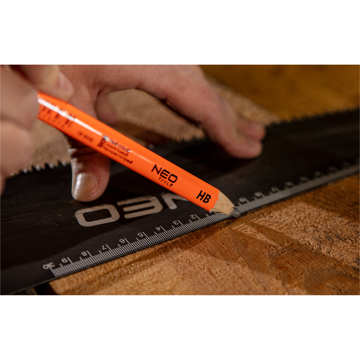 A NEO 240 mm-es ácsceruza leginkább fafelületek rajzolásra, jelölésre alkalmas. Grafitjára a közepes, azaz a leginkább általános HB keménység a jellemző, illetve a sötét, de nem fekete szín. A NEO márka a professzionális igényeket is kielégíti.