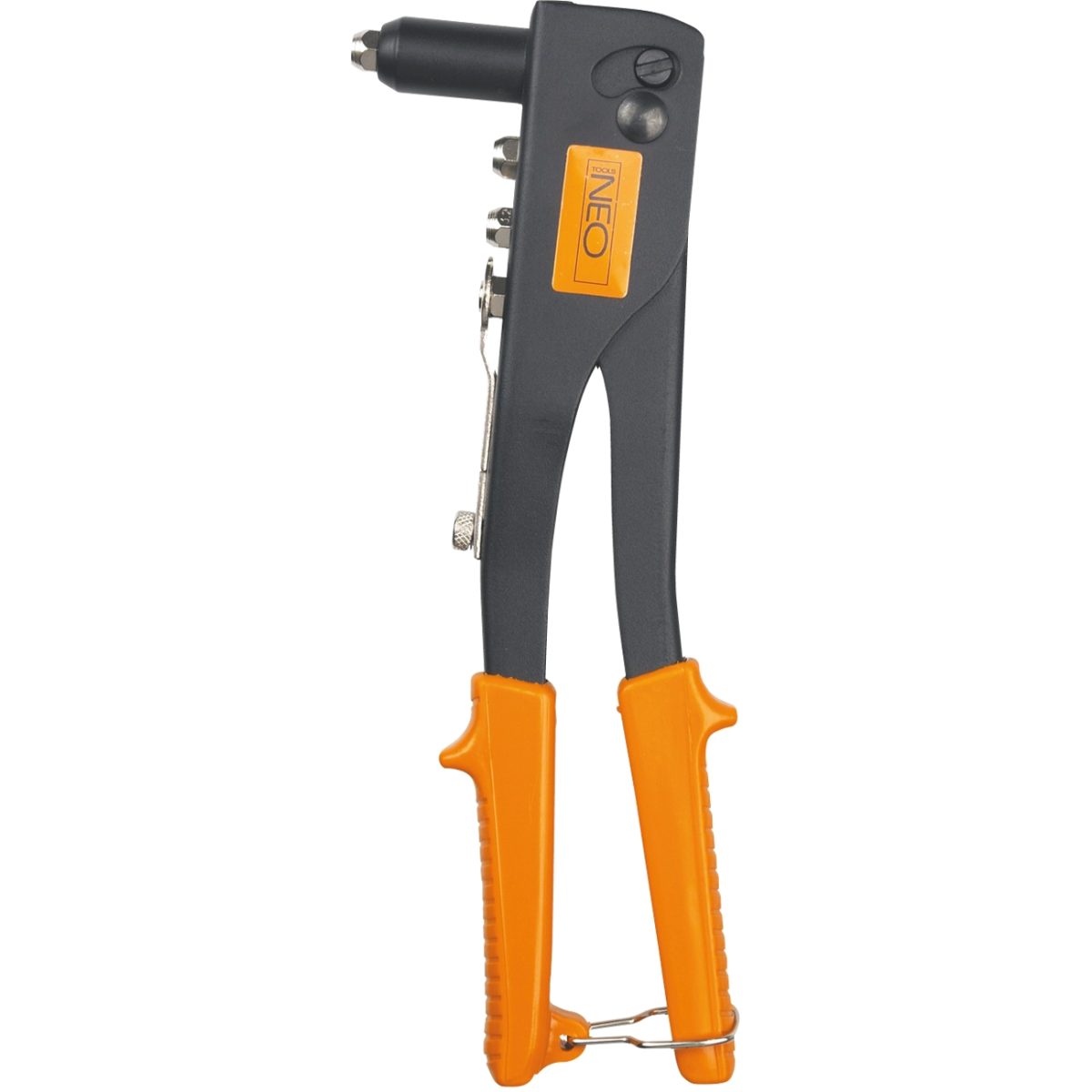 NEO szegecshúzó 2,4 mm, 3,2 mm, 4,0 mm és 4,8 mm átmérőjű acél, rozsdamentes acél és alumínium szegecsekhez. A fogó felső markolata és teste erős acélból készült. A pofák és házuk kiváló minőségű, tartósságukat garantáló acélötvözetből készülnek. A fej nyújtott eleje megkönnyíti a szegecselést a nehezen hozzáférhető helyeken. Kényelmes markolatok, a tárolást megkönnyítő zárgyűrűvel. A termék kiváló minőségét és megbízhatóságát bizonyítja a TÜV Rheinland tanúsítvány. A NEO márka a professzionális igényeket is kielégíti.