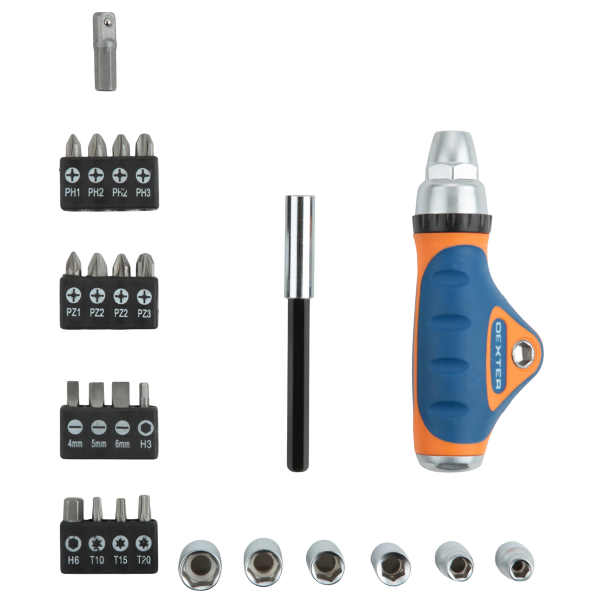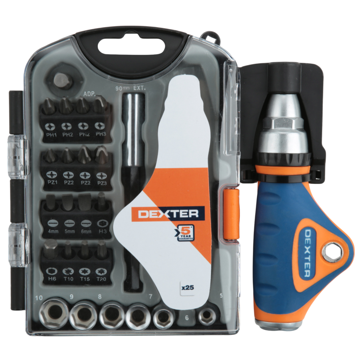 Dexter 2 racsnis csavarhúzó, 25 részes, bit készlettel