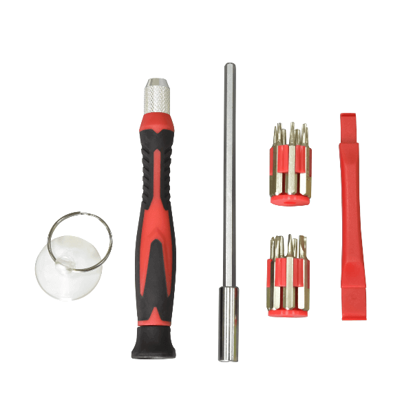 Precíziós javítókészlet. Ideális kisméretű elektronikai cikkek mint például mobiltelefonok, tabletek, kamerák, kijelzők, stb. javítására. Készlet tartalma: 1 x csavarhúzó nyél, 1 x 120 mm hosszabbító szár, 1 x tapadókorong, 1 x emelő. 14-féle csavarhúzó bit: 1 x háromszög bit: 2 mm, 2 x 5 csúcsú csillag bit: 0,8 és 2 mm, 2 x phillips bit: PH000, PH00, 3 x hornyolt bit: 1.5, 2.0, 2.5 mm, 6 x torx bit: T4, T5, T6, T7, T8, T10.