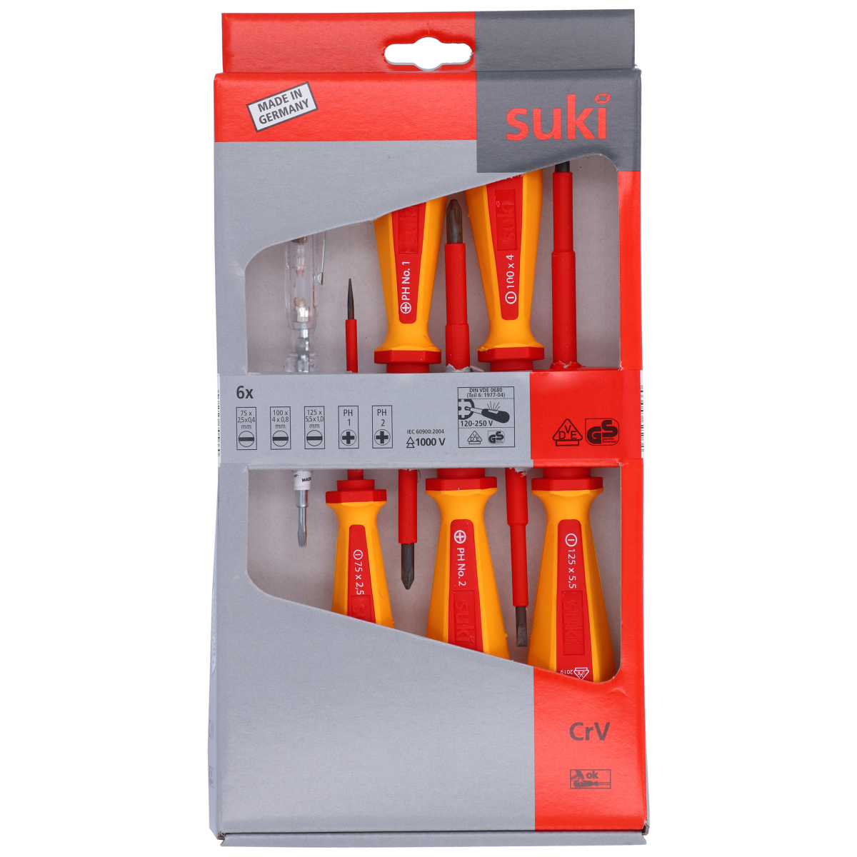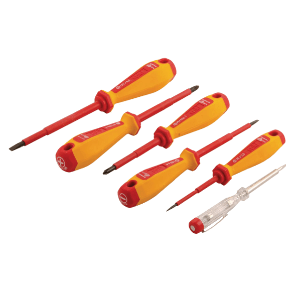 Csavarhúzó készlet SL/PH fejű csavarokhoz, a készlet fáziskeresőt is tartalmaz.