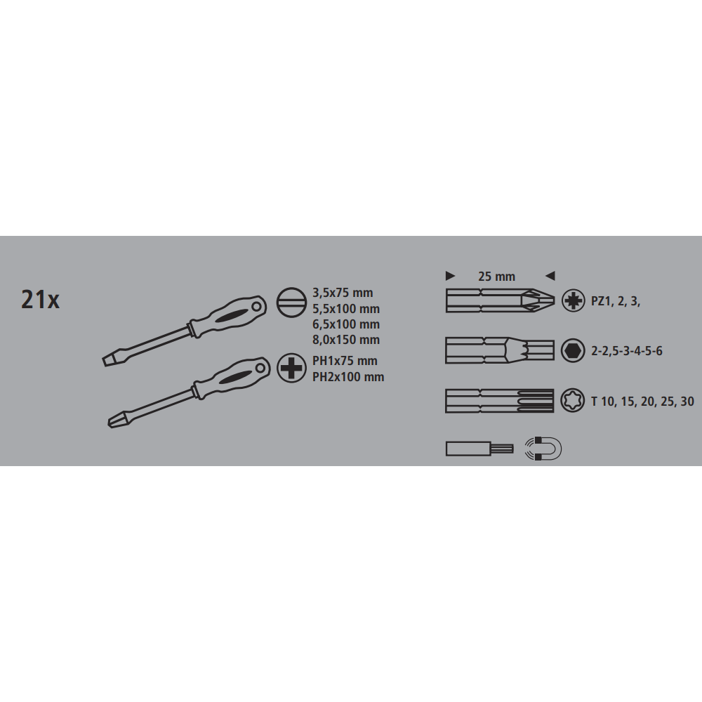 A Suki 21 darabos csavarhúzó- és bitkészlet a TopDeal terméke, mely minden területen, legyen szó otthoni vagy professzionális munkáról, megbízható eszközként szolgál. A készlet változatos bitjei és ergonomikus kialakítású csavarhúzói biztosítják a kényelmes és precíz munkavégzést.