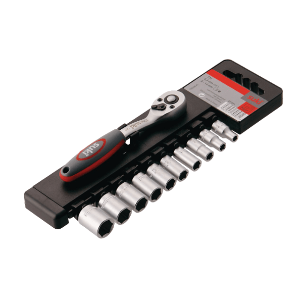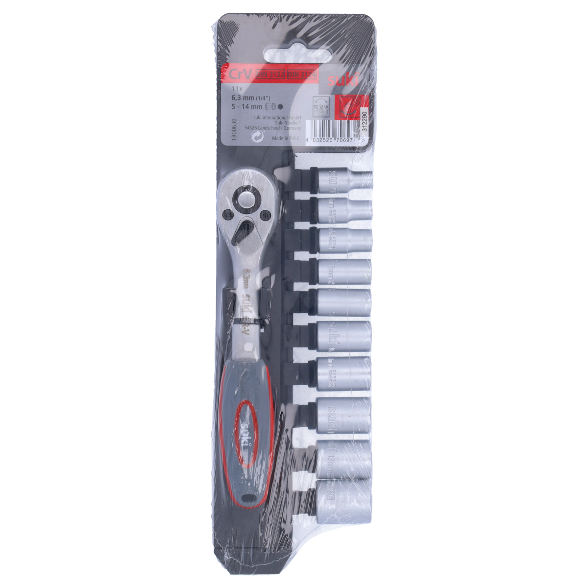 A racsnis készlet anyák és hatszögletű csavarok meghúzására alkalmas nehezen hozzáférhető helyeken; 1 db racsnis kar.