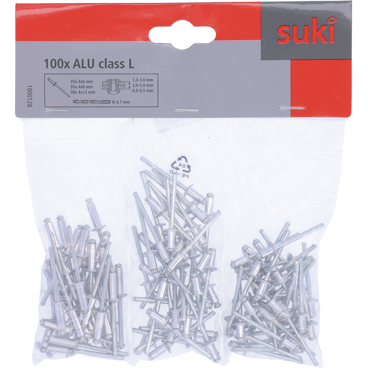 Az alumínium szegecs különböző anyagok összefogatására alkalmas; alumínium szegecs testes, acél köpeny. A csomag tartalma: 35 db 4x6 mm-es, 35 db 4x8 mm-es, 30 db 4x12 mm-es popszegecs.