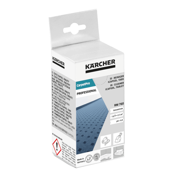 A CarpetPro szőnyegtisztító (RM 760 tabletta): permetextrakciós alaptisztítószer tablettaformában "Encapsulation"-technológiával. Vízben oldható, a tisztítást elősegítő fóliaburkolatban, nem kell öblíteni.