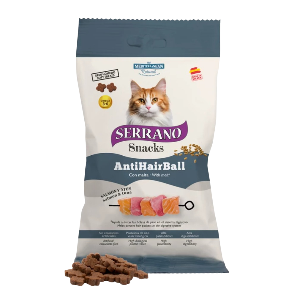 Ízletes, funkcionális jutalomfalat szőrlabda-képződés ellen. A receptúra lazac- és tonhalliszttel (17–17%), valamint 4% malátakivonattal és hozzáadott rostokkal segíti a lenyelt szőr természetes távozását. Taurinnal és vitaminokkal dúsítva a mindennapi kényeztetéshez.