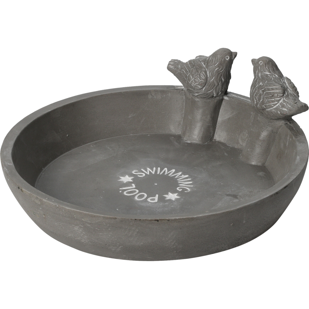 A forró nyári napokon a kertbe látogató madarak meglephetők egy különleges madáritatóval. Ebből a tálból nemcsak inni tudnak a madarak, hanem elég nagy ahhoz is, hogy egy frissítő fürdőt vehessenek. Két kis dekor madárral az itató szélén.